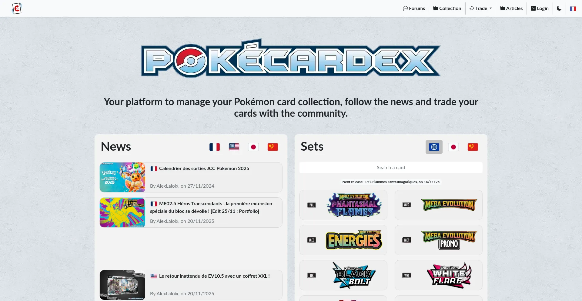 Your platform to manage your Pokémon card collection, follow news and exchange cards with the community.