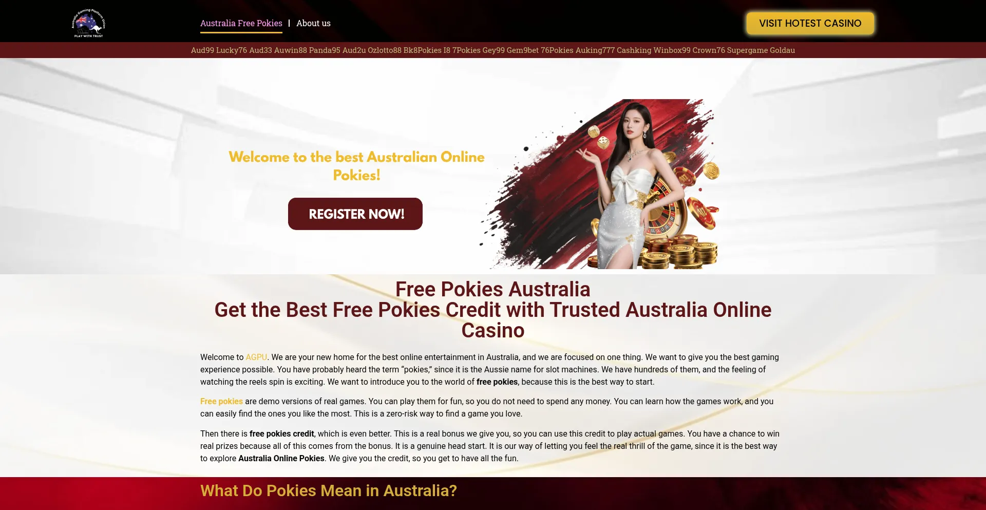 Play the best free pokies in Australia at AGPU. We give you real free pokies credit to start playing! Discover hundreds of top Australia Online Pokies!
