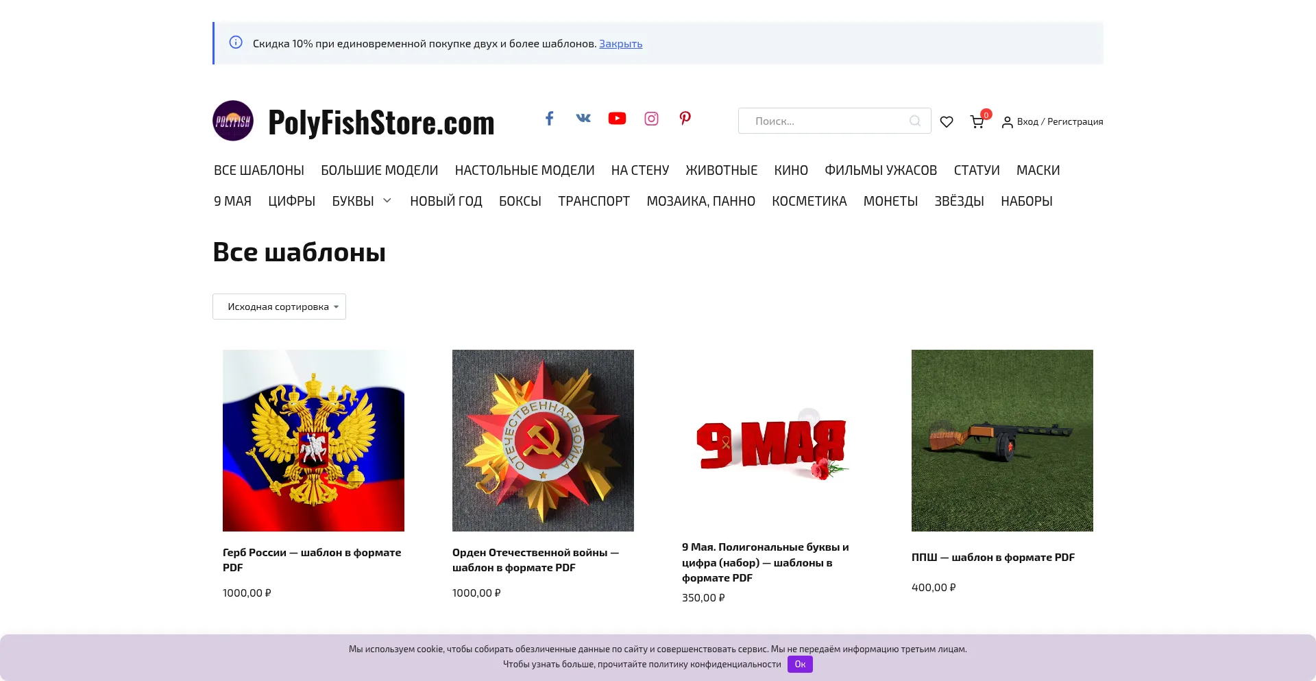PolyFishStore.com — PolyFish — Шаблоны для самостоятельной сборки фигур из бумаги.