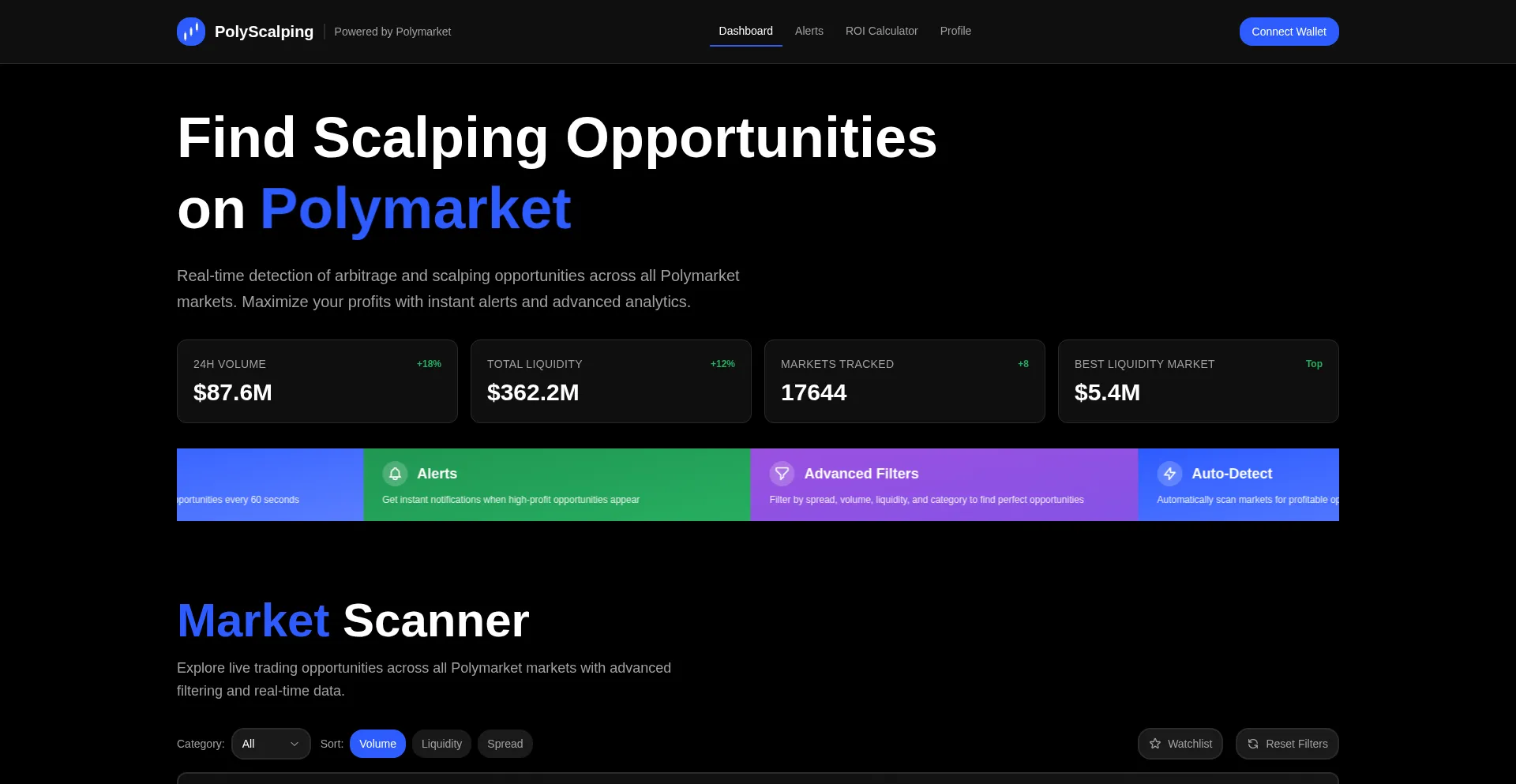 Real-time detection of arbitrage and scalping opportunities across all Polymarket markets. Maximize your profits with instant alerts and advanced analytics.