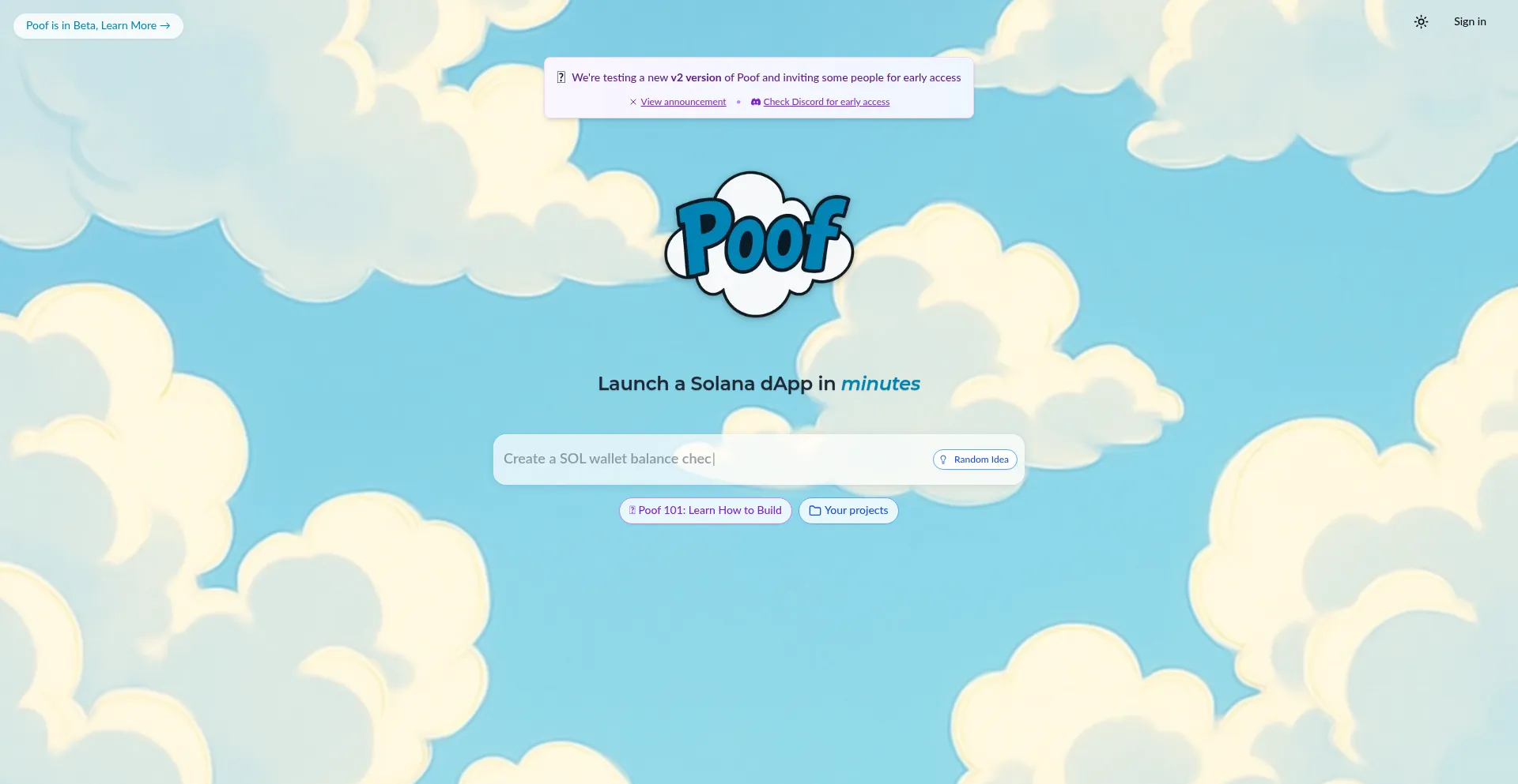The fastest way to build and deploy Solana dApps. Describe what you want to build and our AI agents handle the database, smart contracts, actions, and UI.