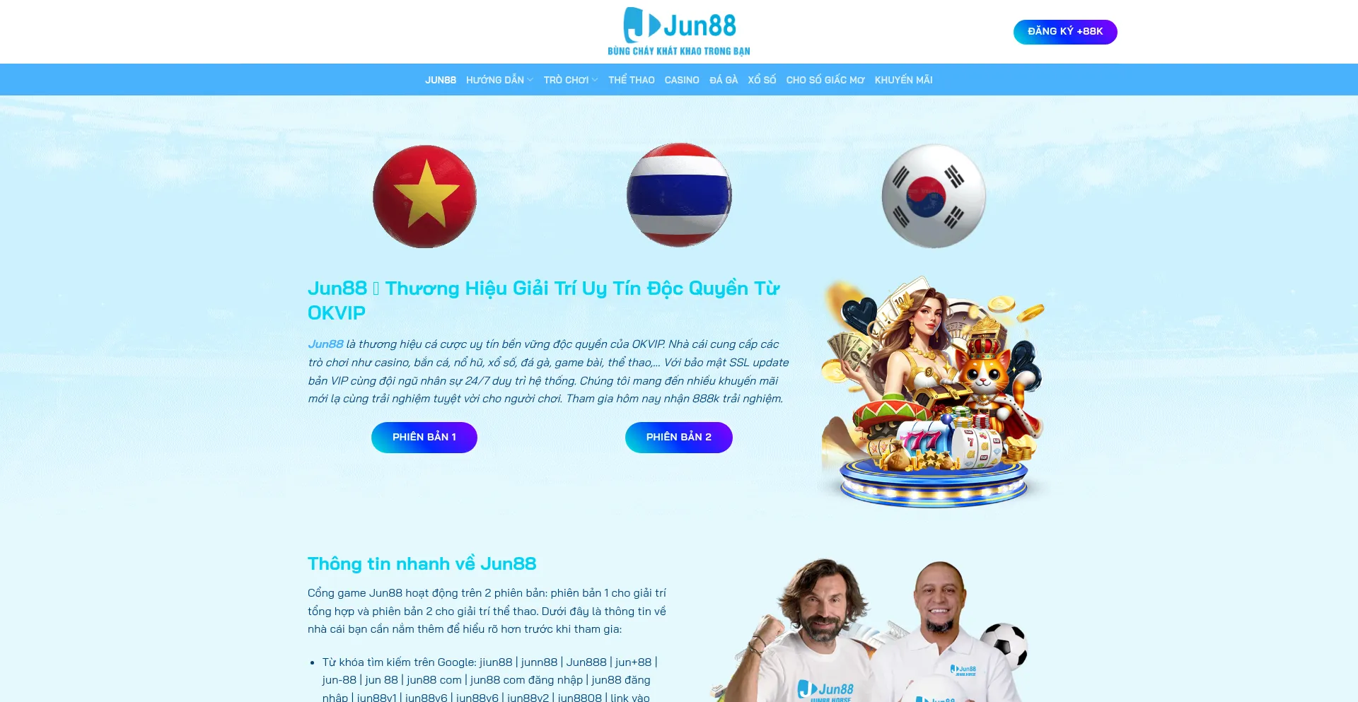 Jun88 là sản phẩm độc quyền từ OKVIP. Kho games hơn 4000 trò chơi bắn cá, casino, nổ hũ, đá gà, xổ số, game bài,... đang chờ đón bạn.