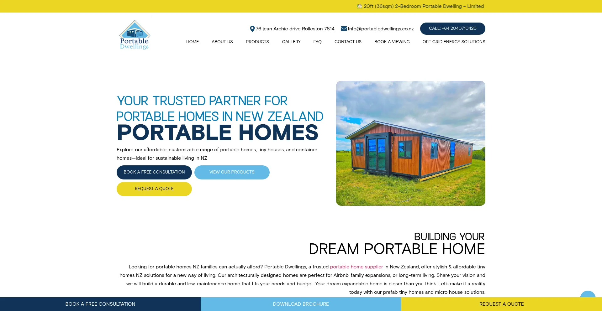 该网站实现数据收集表单,请求个人信息,包括姓名、电子邮件地址、电话号码或其他敏感详细信息。用户应验证 portabledwellings.co.nz 的合法性并在提交个人数据前查看隐私政策。