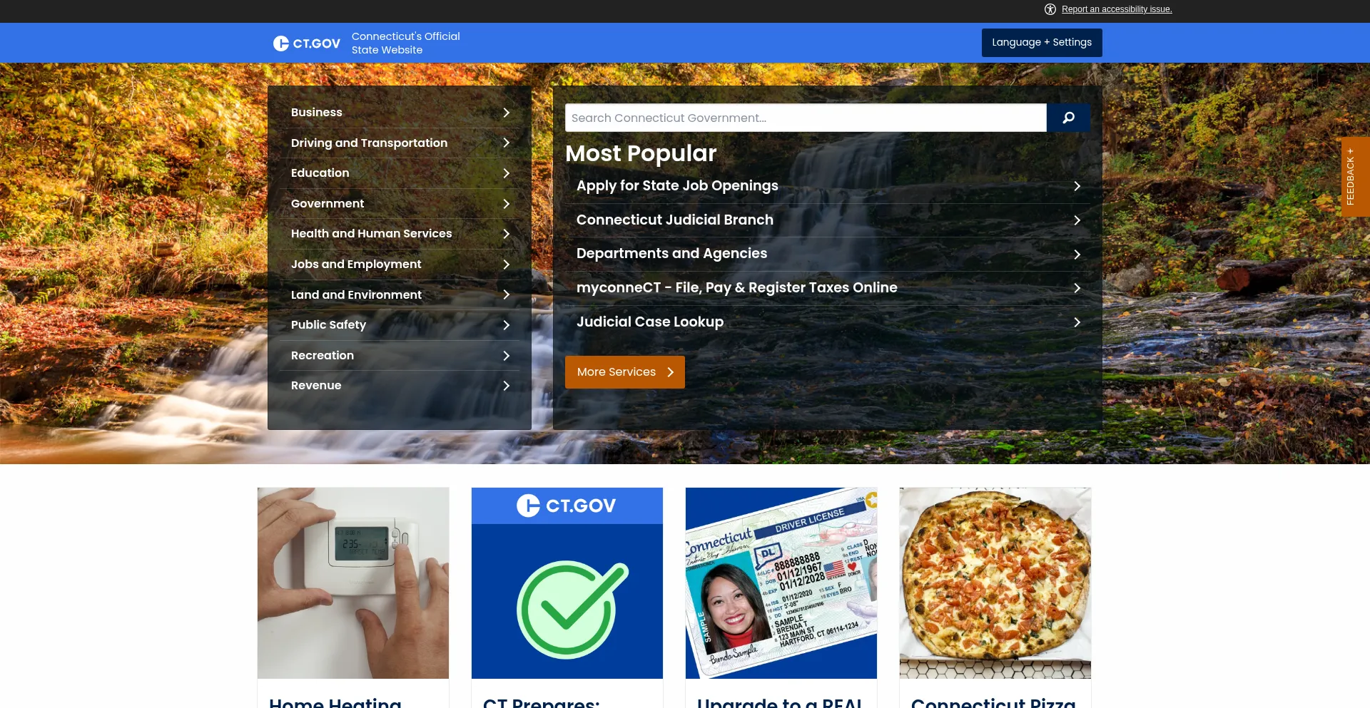该网站实现数据收集表单,请求个人信息,包括姓名、电子邮件地址、电话号码或其他敏感详细信息。用户应验证 portal.ct.gov 的合法性并在提交个人数据前查看隐私政策。