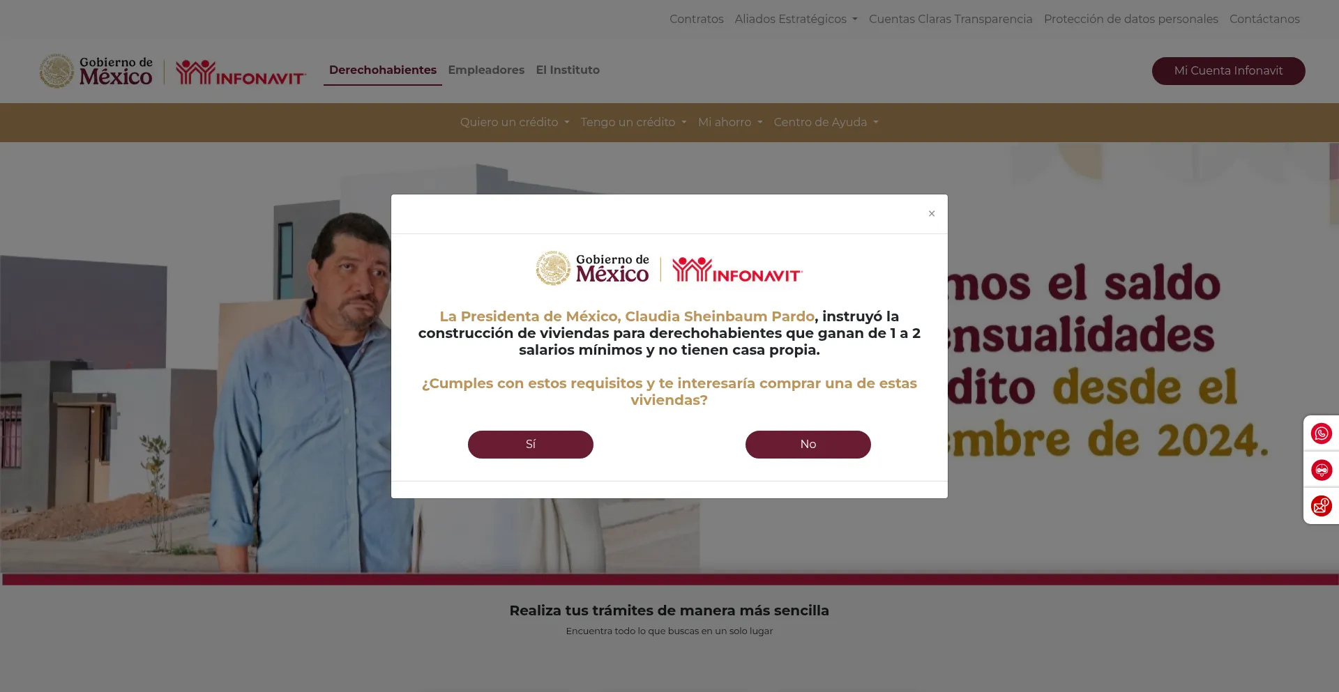 网站上存在社交媒体链接表明 portal.infonavit.org.mx 在社交媒体上维护官方账户,这是可信度和参与度的积极信号。