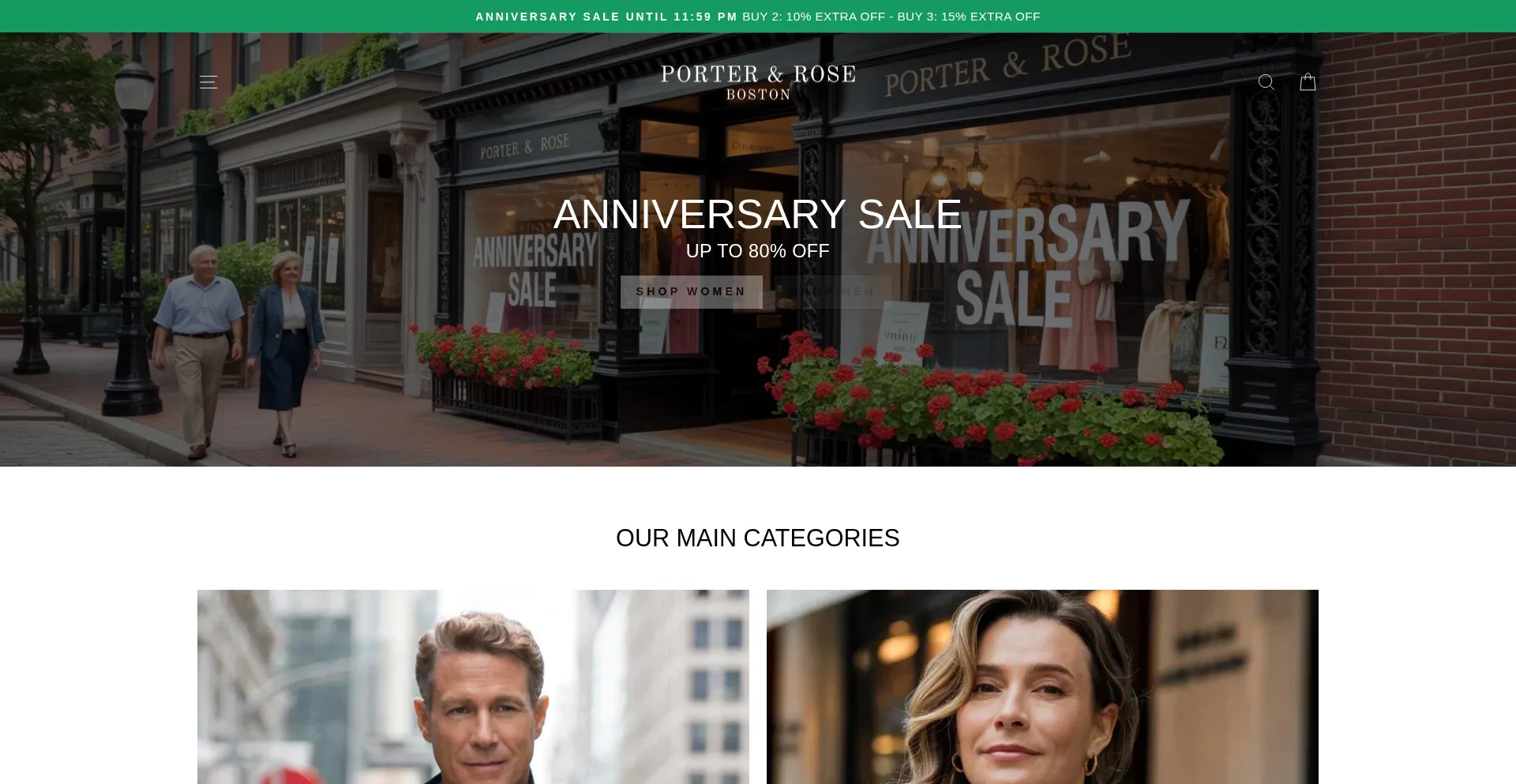 分析表明 porterandrose.com 作为电子商务平台运营,促进商品或服务的在线交易。该网站实现了购物车功能、支付处理系统和产品目录功能,这些是商业零售运营的典型特征。