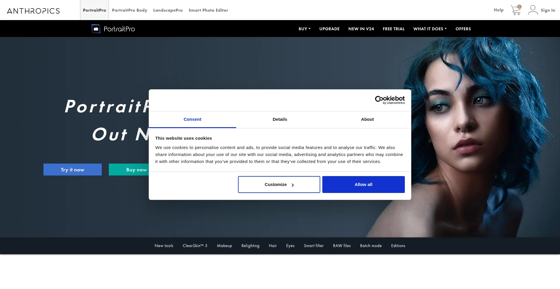 该网站实现符合GDPR或CCPA等隐私法规的cookie同意机制。这表明 portraitprofessional.com 遵守数据保护标准并为用户提供对个人数据收集实践的控制。