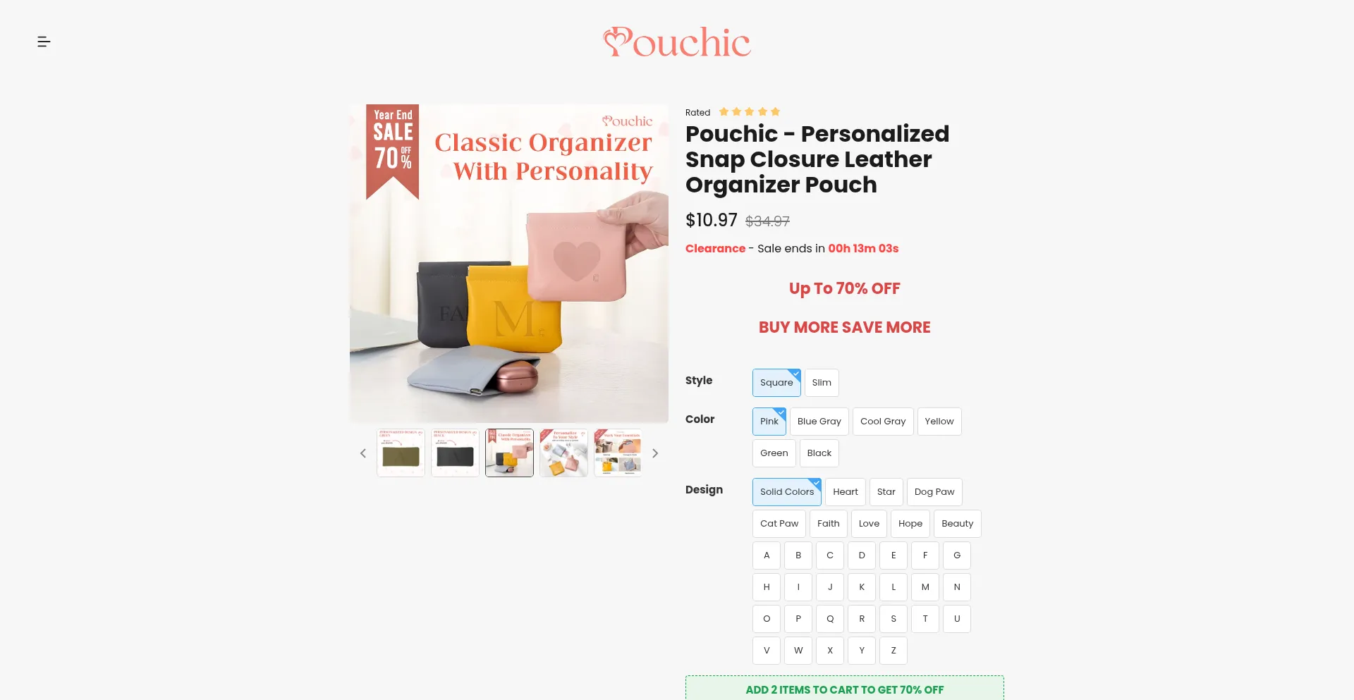 Pouchic - Personalized Snap Closure Leather Organizer Pouch