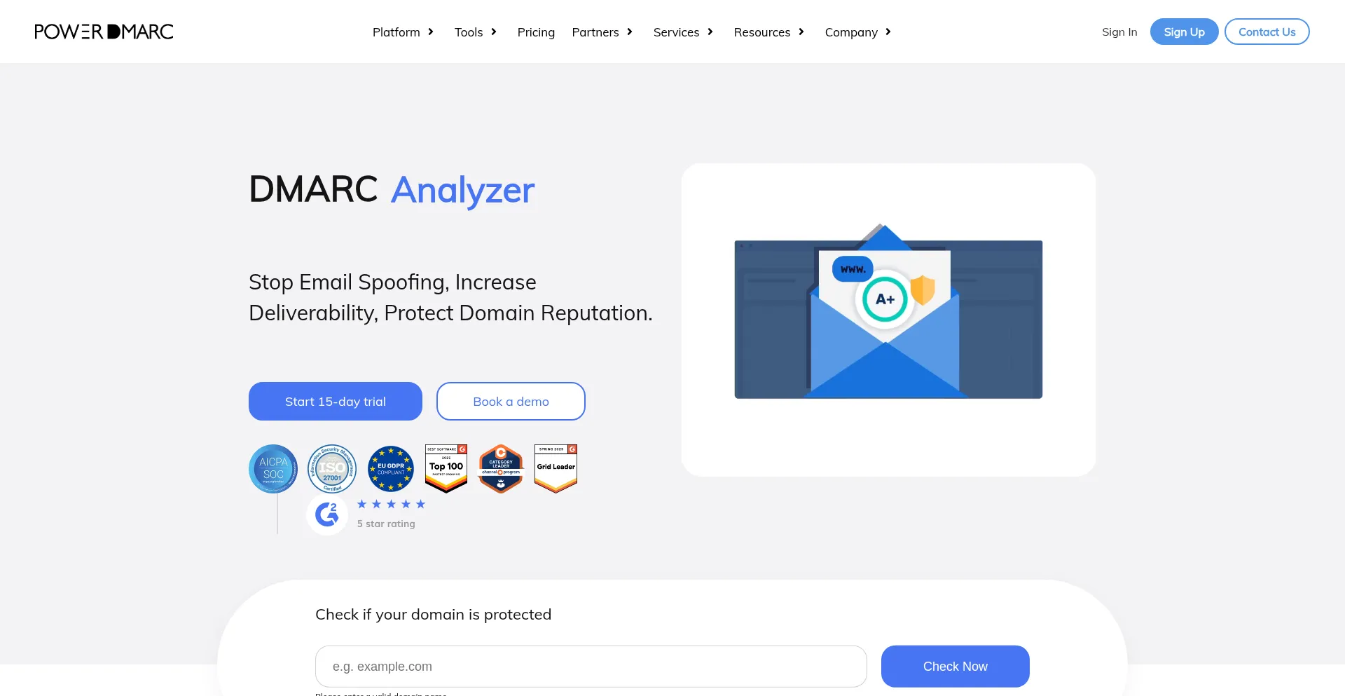 PowerDMARC's DMARC Analyzer and DMARC monitoring service allow organizations to monitor and analyze DMARC protecting their email from spoofing and phishing.