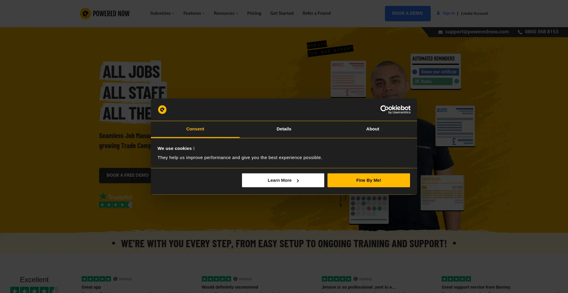 该网站实现符合GDPR或CCPA等隐私法规的cookie同意机制。这表明 powerednow.com 遵守数据保护标准并为用户提供对个人数据收集实践的控制。
