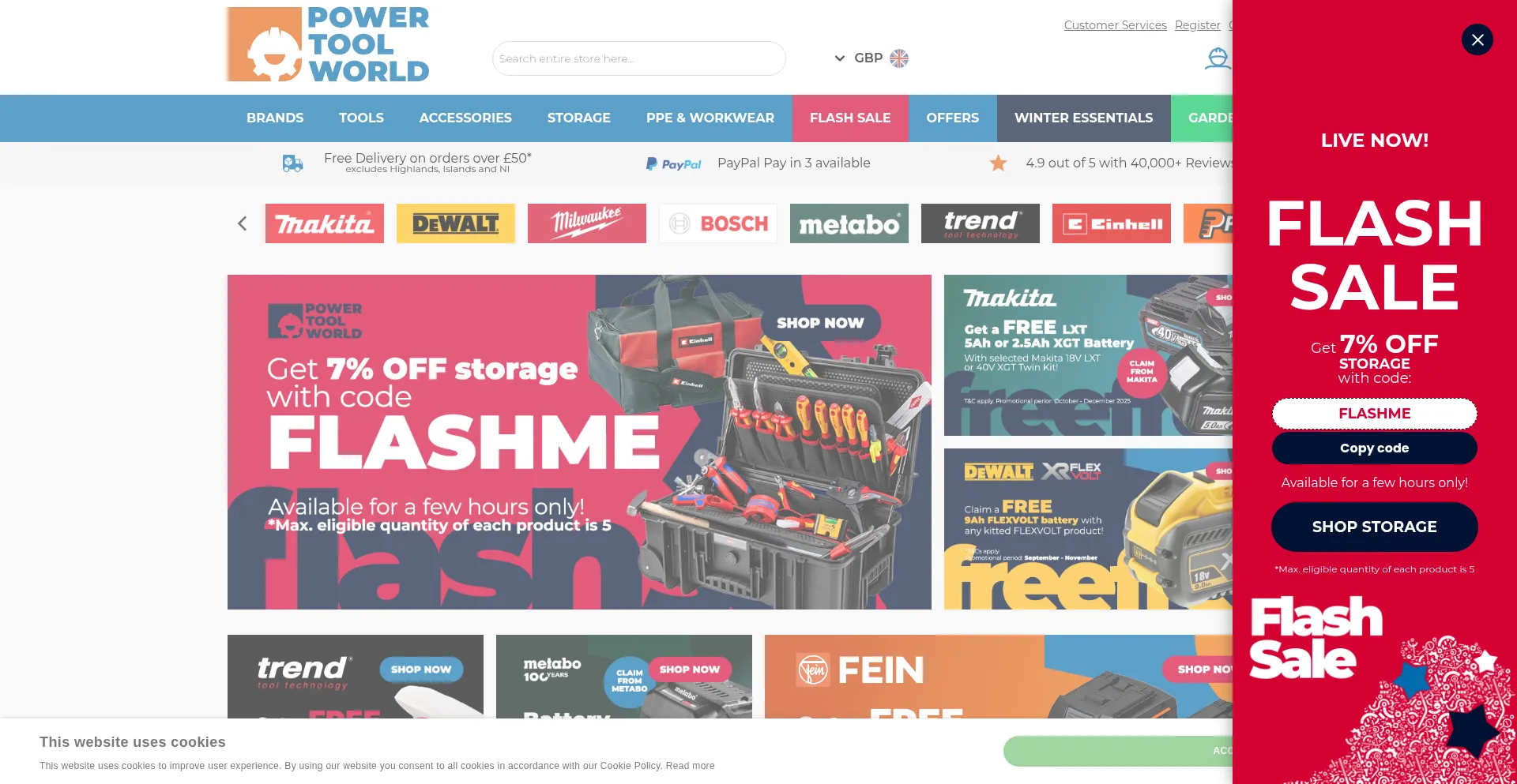 该网站实现符合GDPR或CCPA等隐私法规的cookie同意机制。这表明 powertoolworld.co.uk 遵守数据保护标准并为用户提供对个人数据收集实践的控制。