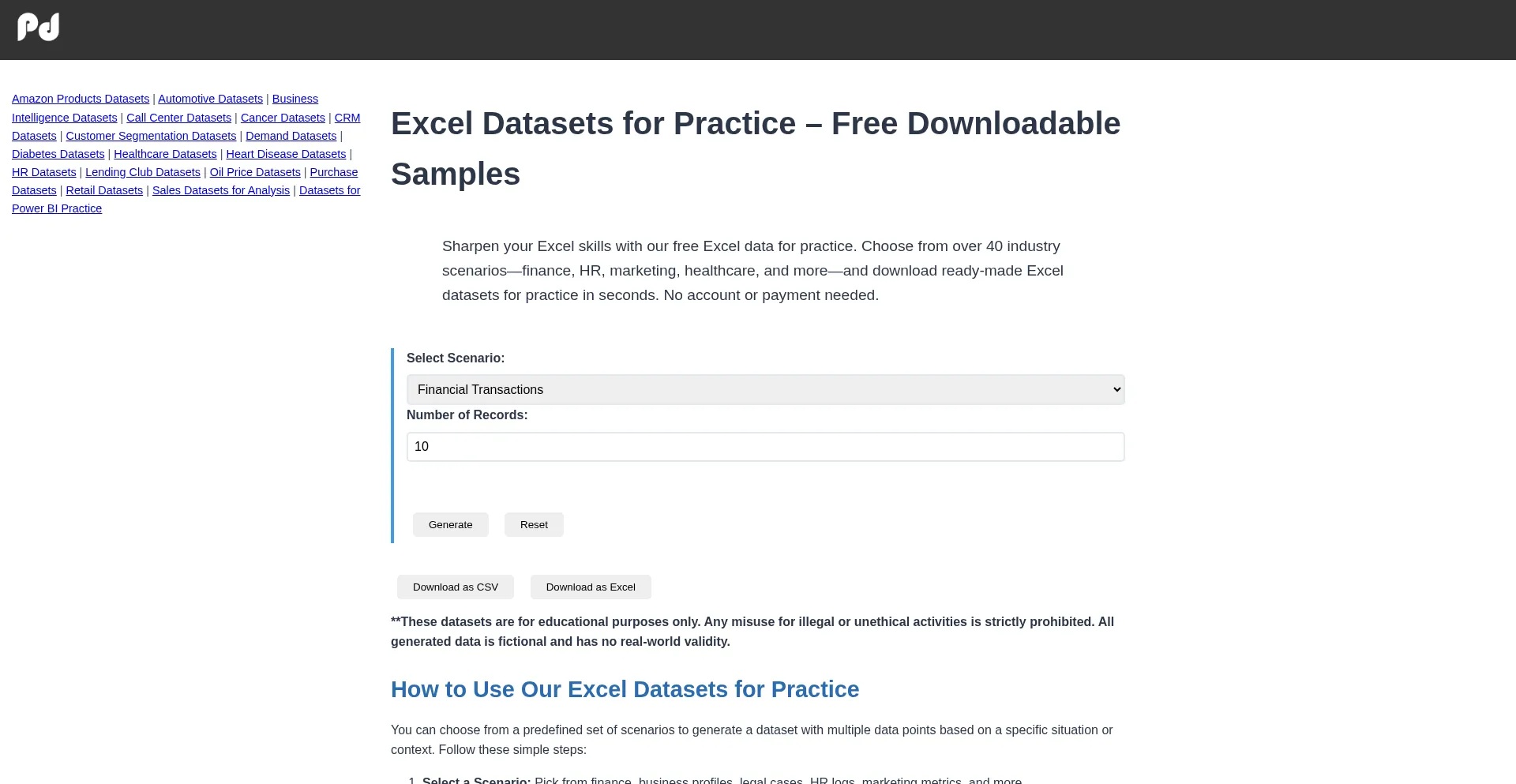 Excel Data for Practice | Free Excel Datasets & Sample Files