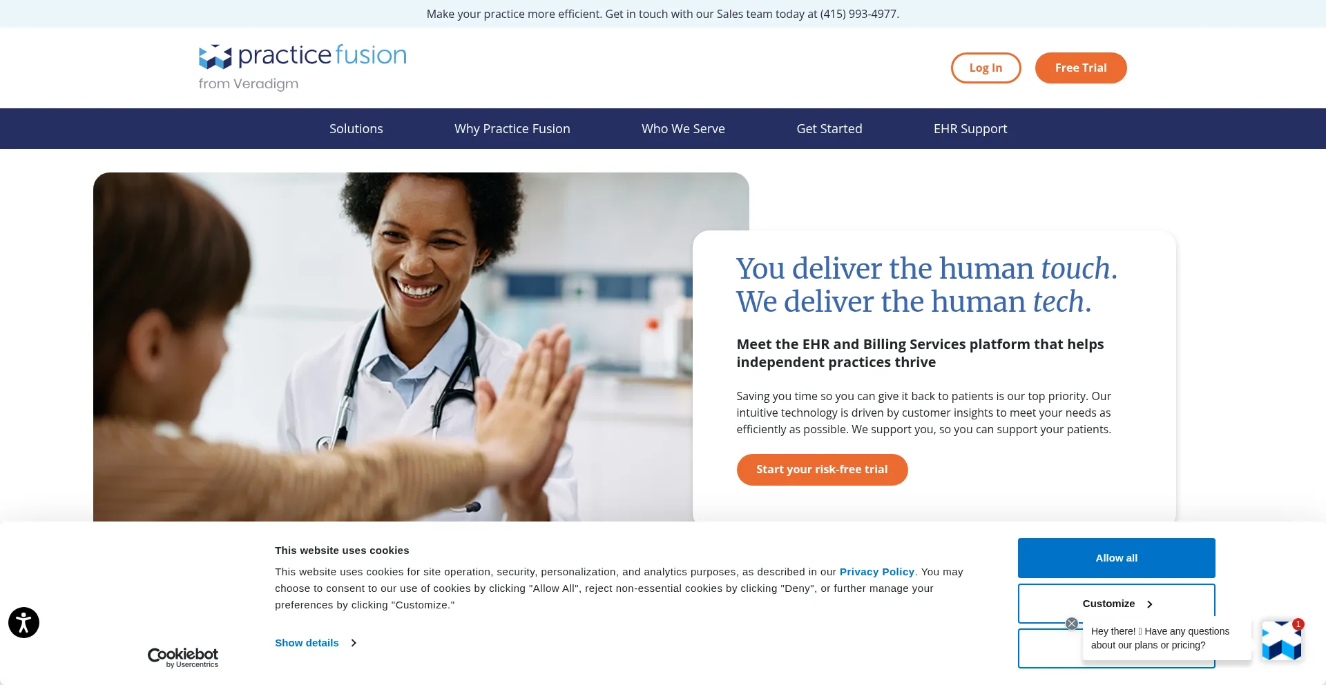 该网站实现符合GDPR或CCPA等隐私法规的cookie同意机制。这表明 practicefusion.com 遵守数据保护标准并为用户提供对个人数据收集实践的控制。
