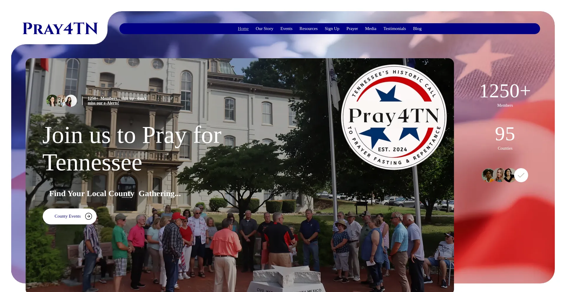 该网站实现数据收集表单,请求个人信息,包括姓名、电子邮件地址、电话号码或其他敏感详细信息。用户应验证 pray4tn.us 的合法性并在提交个人数据前查看隐私政策。