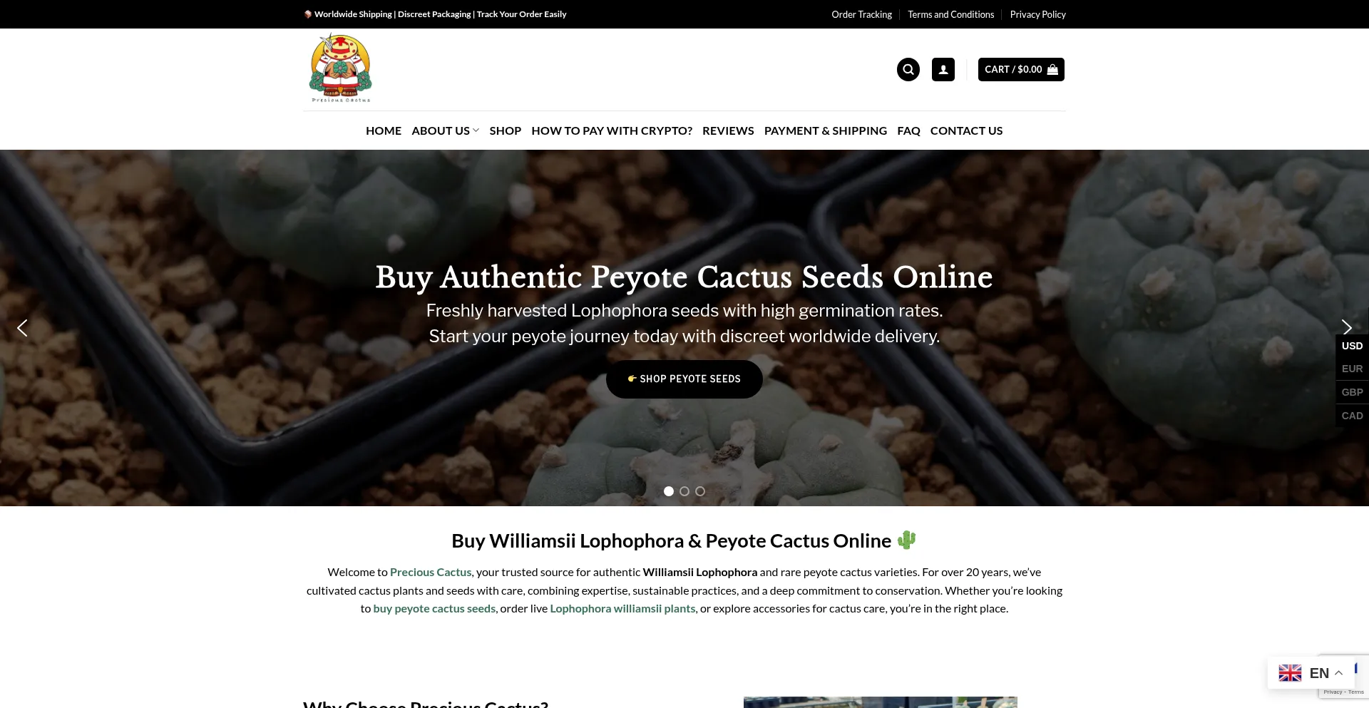 Shop authentic Lophophora williamsii plants & peyote cactus seeds. Discreet worldwide shipping, secure payments & 20+ years of expertise.