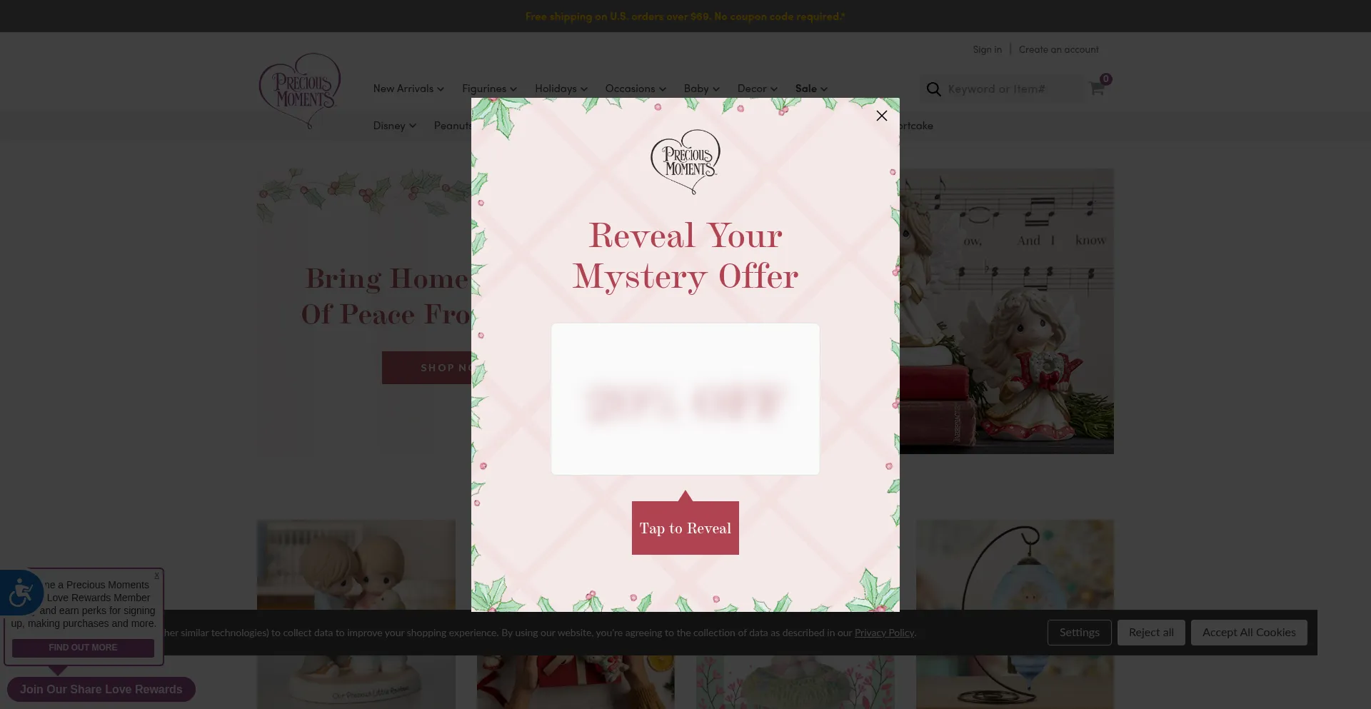 该网站实现符合GDPR或CCPA等隐私法规的cookie同意机制。这表明 preciousmoments.com 遵守数据保护标准并为用户提供对个人数据收集实践的控制。