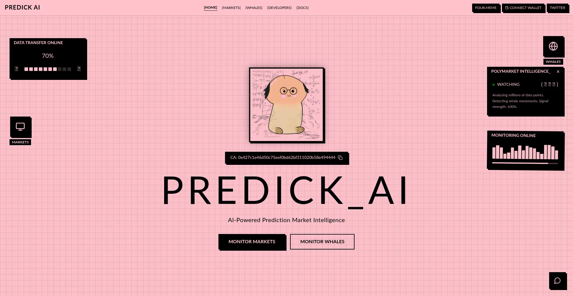 Predick AI is a memecoin with artificial intelligence utility that helps you make smarter decisions in predicting Polymarket trades. Track whale movements, analyze market sentim...