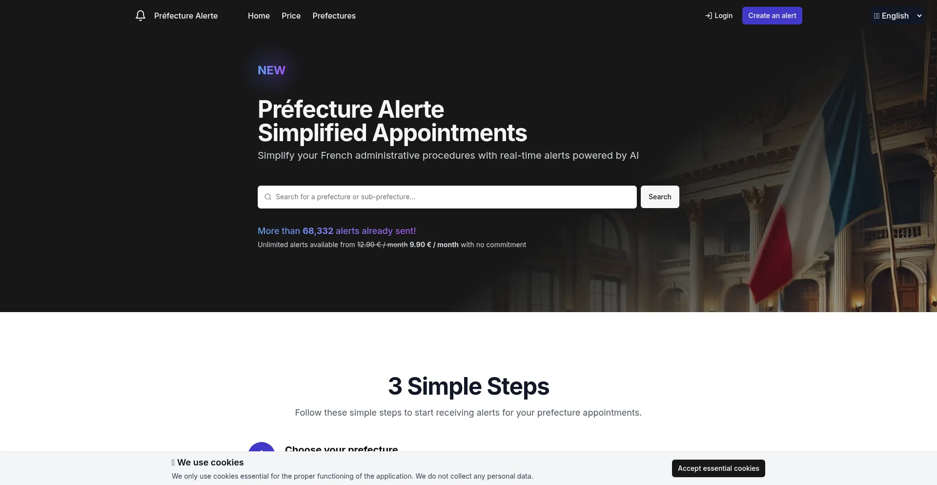 Quickly book a prefecture appointment for the French prefecture with our automated service. Prefecture Alerte notifies you in real time of available slots.