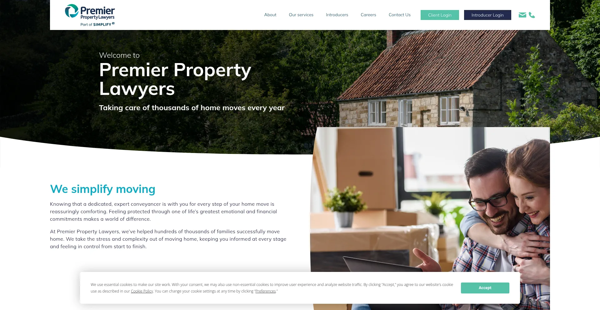 该网站实现符合GDPR或CCPA等隐私法规的cookie同意机制。这表明 premierpropertylawyers.com 遵守数据保护标准并为用户提供对个人数据收集实践的控制。