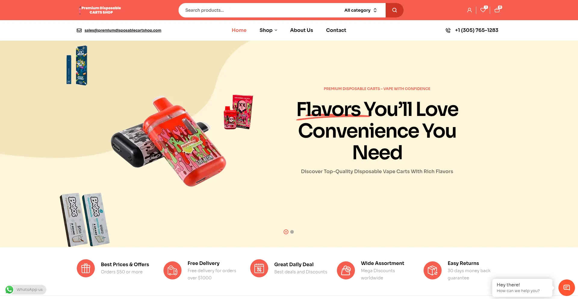 分析表明 premiumdisposablecartshop.com 作为电子商务平台运营,促进商品或服务的在线交易。该网站实现了购物车功能、支付处理系统和产品目录功能,这些是商业零售运营的典型特征。