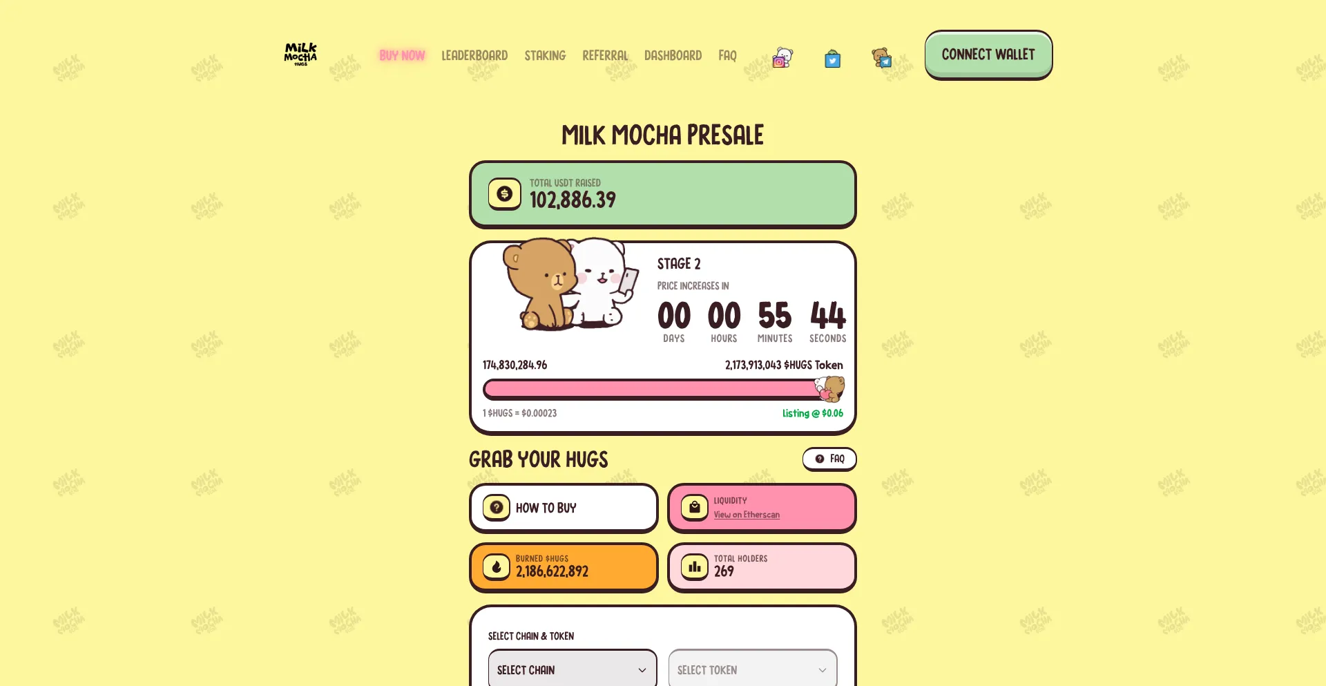 Join the Milk Mocha $HUGS presale – the sweetest token on Ethereum! Learn how to buy, check FAQs, and get your wallet ready for adorable staking & rewards.