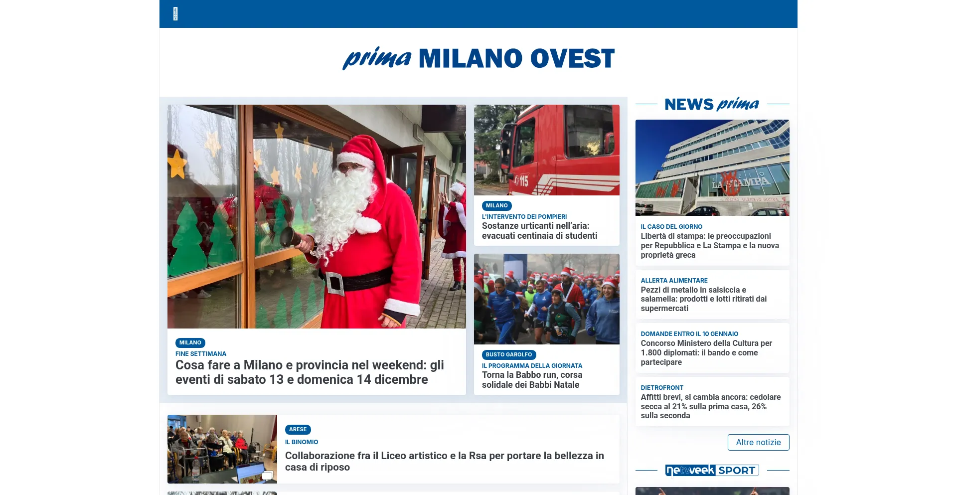 Prima Milano Ovest. Notizie locali, contenuti e servizi aggiornati su cronaca, economia, sport, politica, cultura e turismo