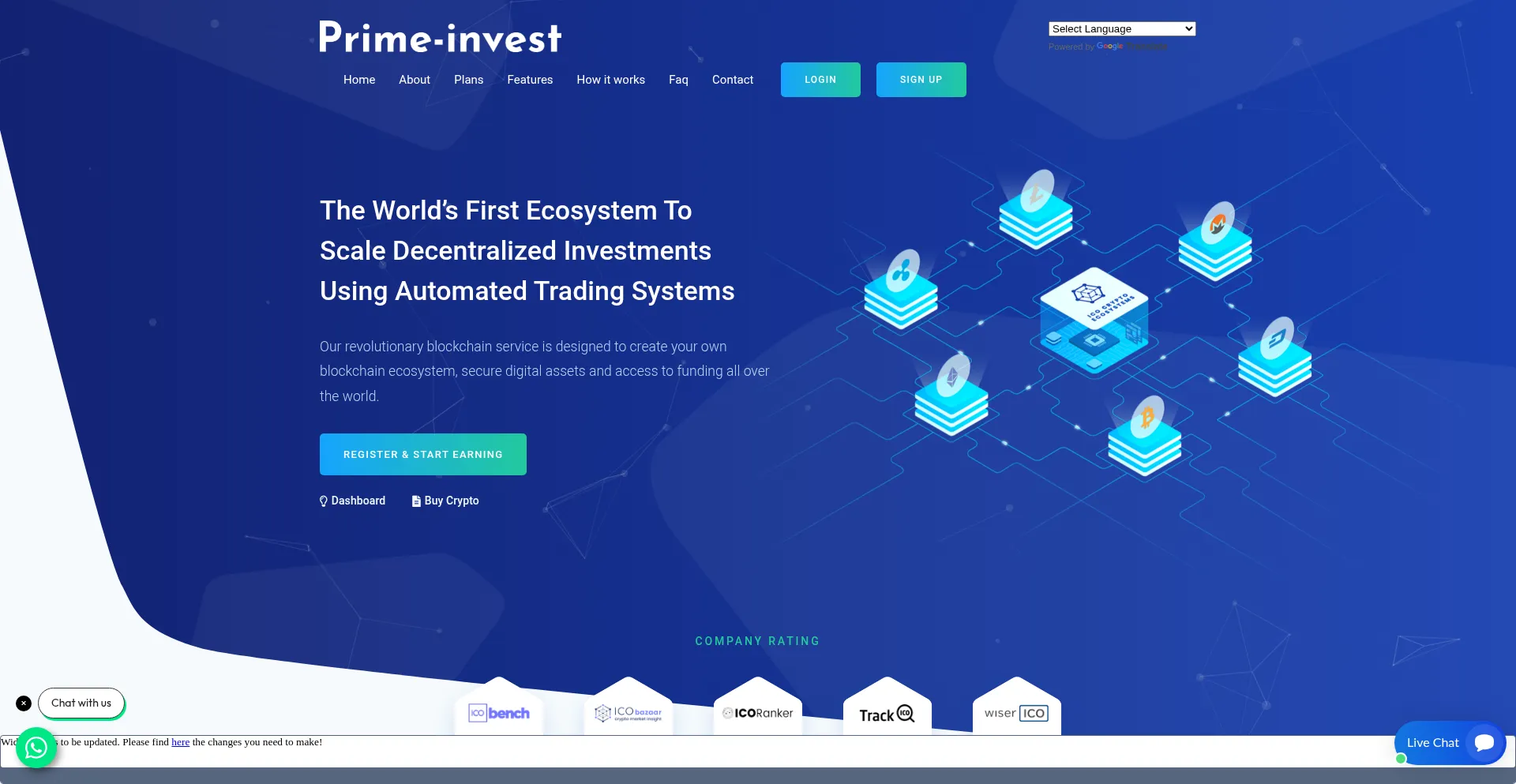 网站 prime-invest.org 可能提供云挖矿服务或加密货币挖矿投资。一些平台提供合法的挖矿租赁服务,而其他平台可能使用虚假的挖矿仪表板来显示无法提取的虚拟收益。