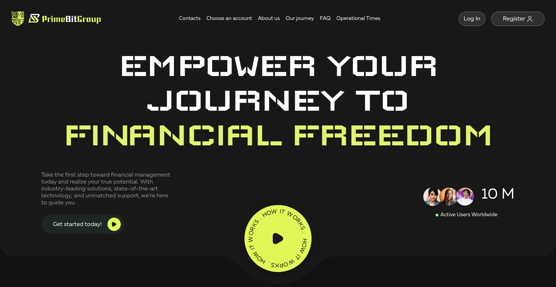 该网站实现数据收集表单,请求个人信息,包括姓名、电子邮件地址、电话号码或其他敏感详细信息。用户应验证 primebitgroup.com 的合法性并在提交个人数据前查看隐私政策。