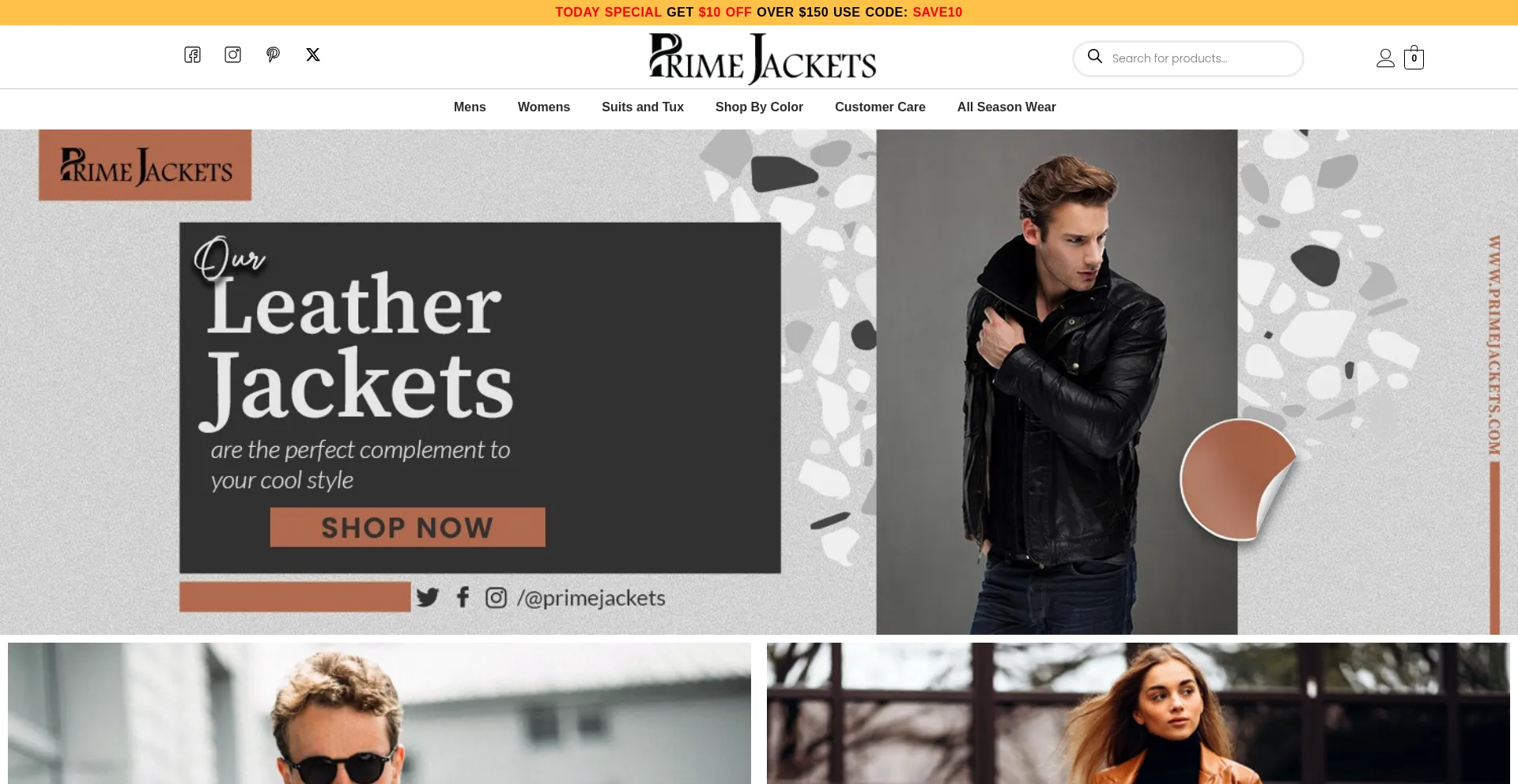 网站上存在社交媒体链接表明 primejackets.com 在社交媒体上维护官方账户,这是可信度和参与度的积极信号。