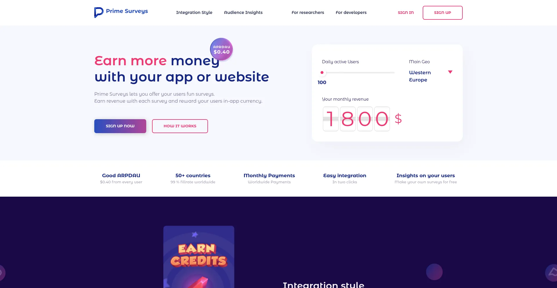Welcome to Prime Surveys, a B2B service provider for companies who want to additionally monetize their website with surveys.