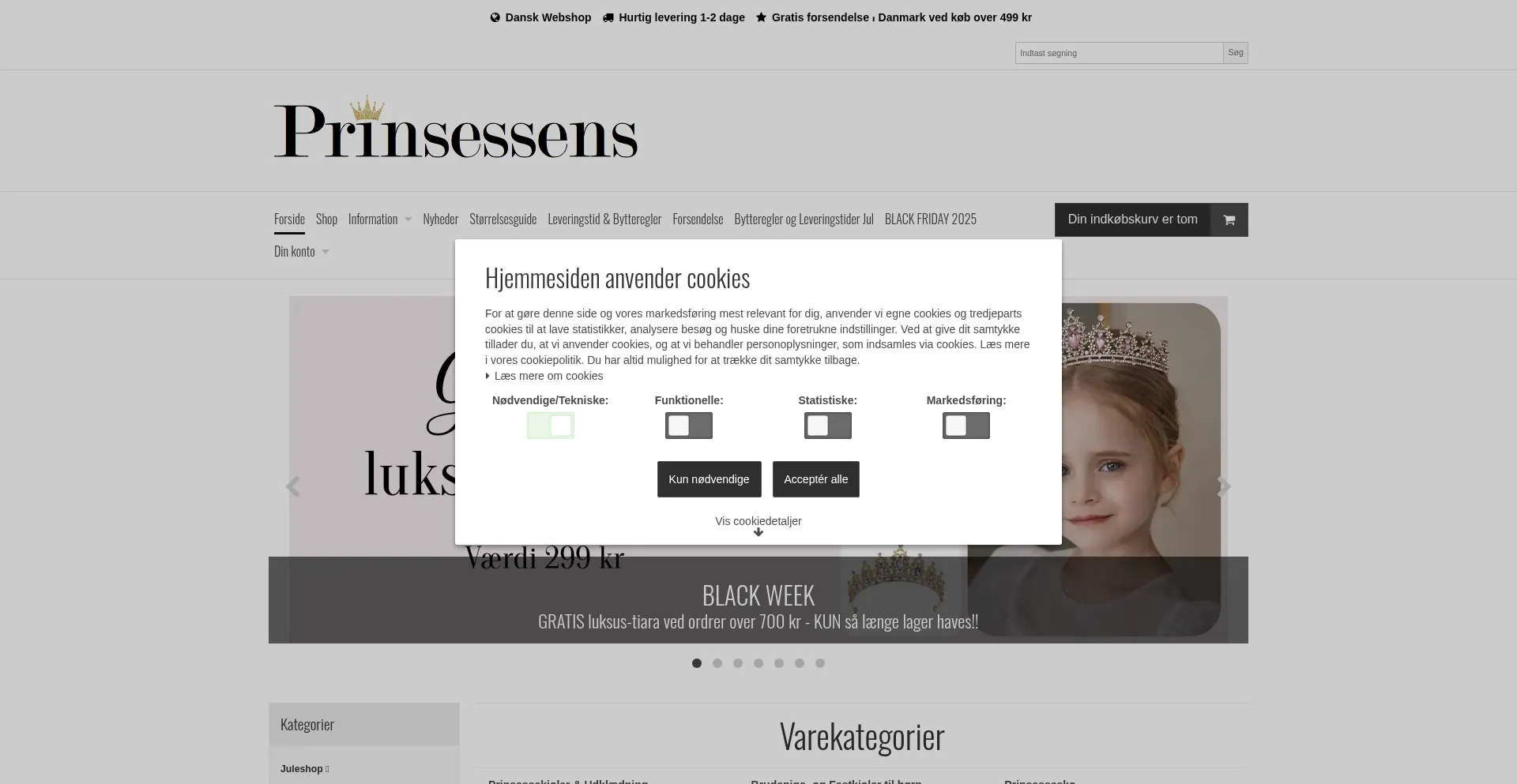 Hos Prinsessens.dk har vi et kæmpe udvalg af smukke eventyr-prinsessekjoler til de mindste prinsesser, og smukke accessories & smykker til kvinder og børn