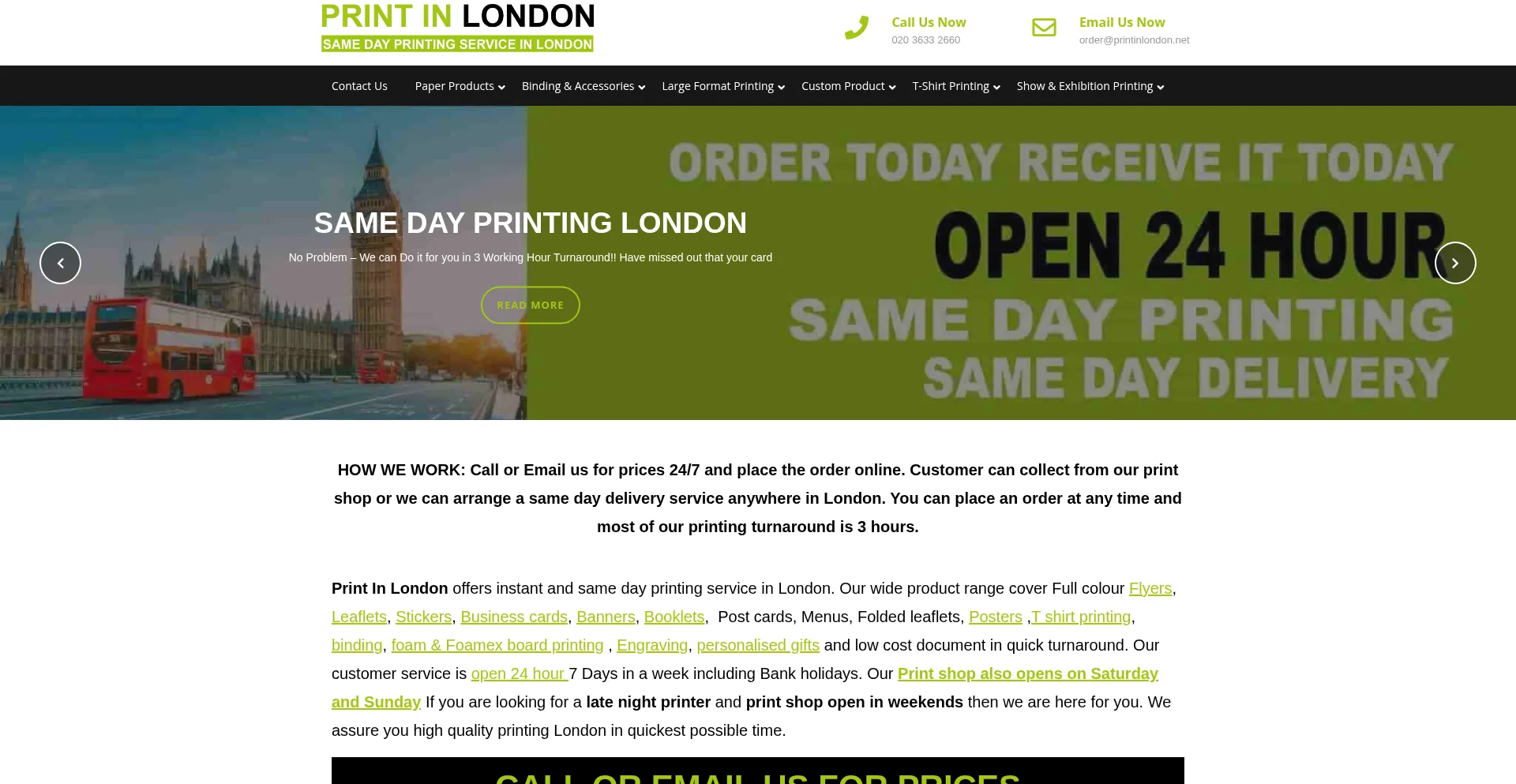 Same Day printing service in London. Color leaflet, Business card, Poster, Banner, Booklet print shop UK. Open 24 Hour including weekends.