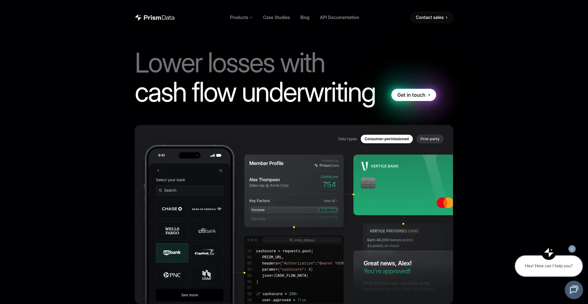 Prism Data is a cash flow underwriting infrastructure and analytics platform helping lenders expand approvals, lower losses, and more.