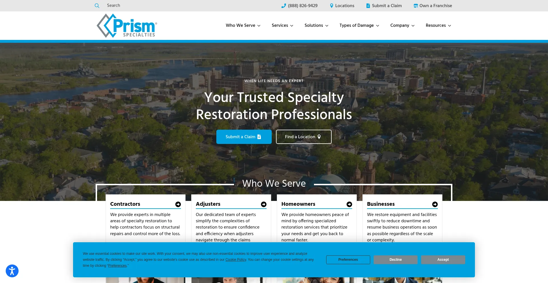 该网站实现符合GDPR或CCPA等隐私法规的cookie同意机制。这表明 prismspecialties.com 遵守数据保护标准并为用户提供对个人数据收集实践的控制。