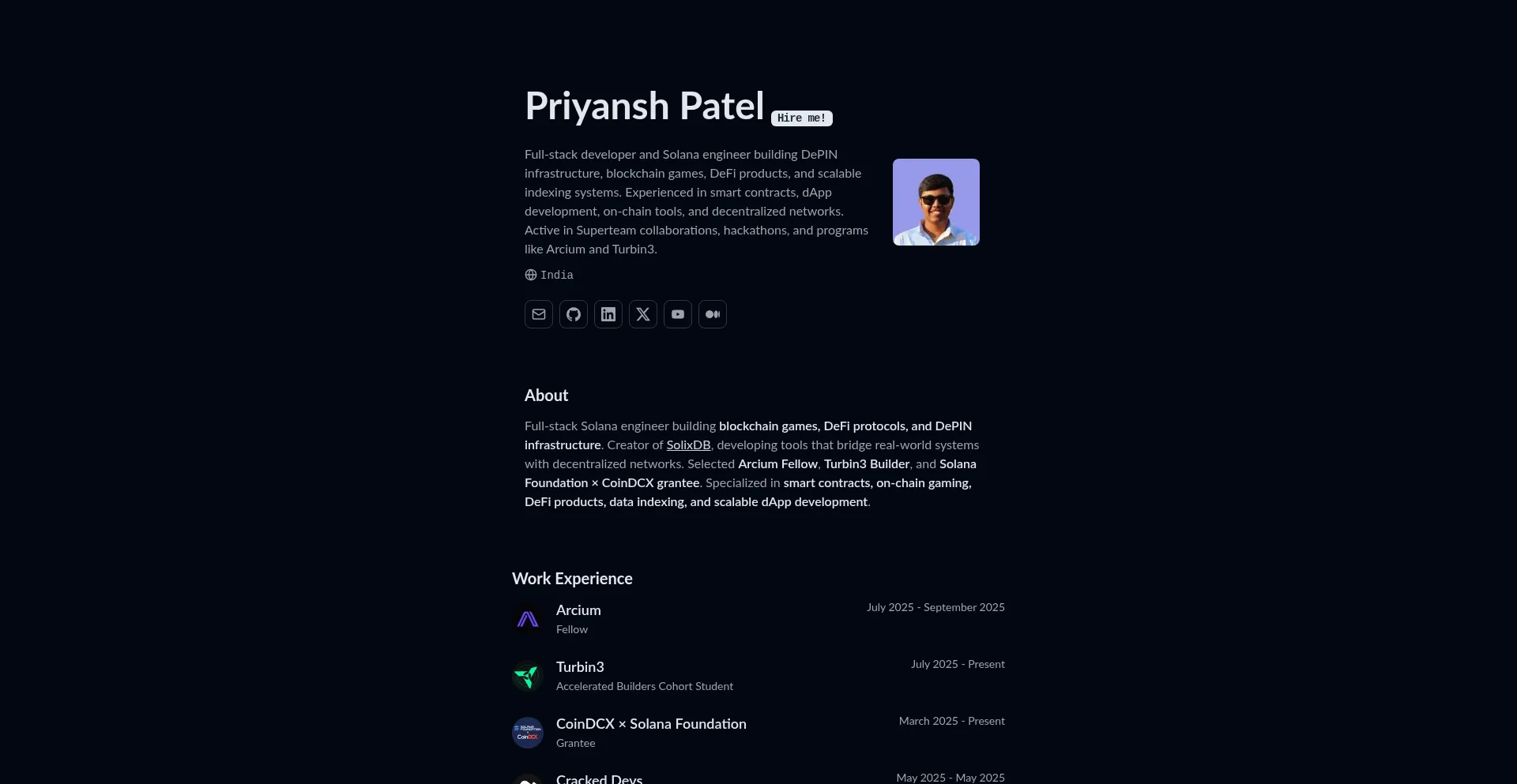 Priyansh Patel | Full-Stack & Solana Developer | Software Engineer Portfolio