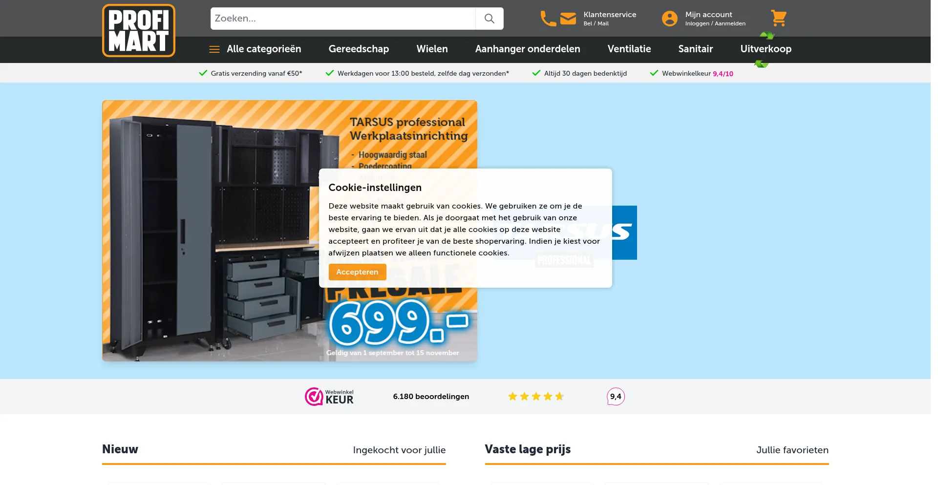 Van aanhangerwielen tot zwenkwielen. Van baden tot ventilatie. Profiteer in onze webshop van onze vaste lage prijzen, snelle levering en uitstekende service.