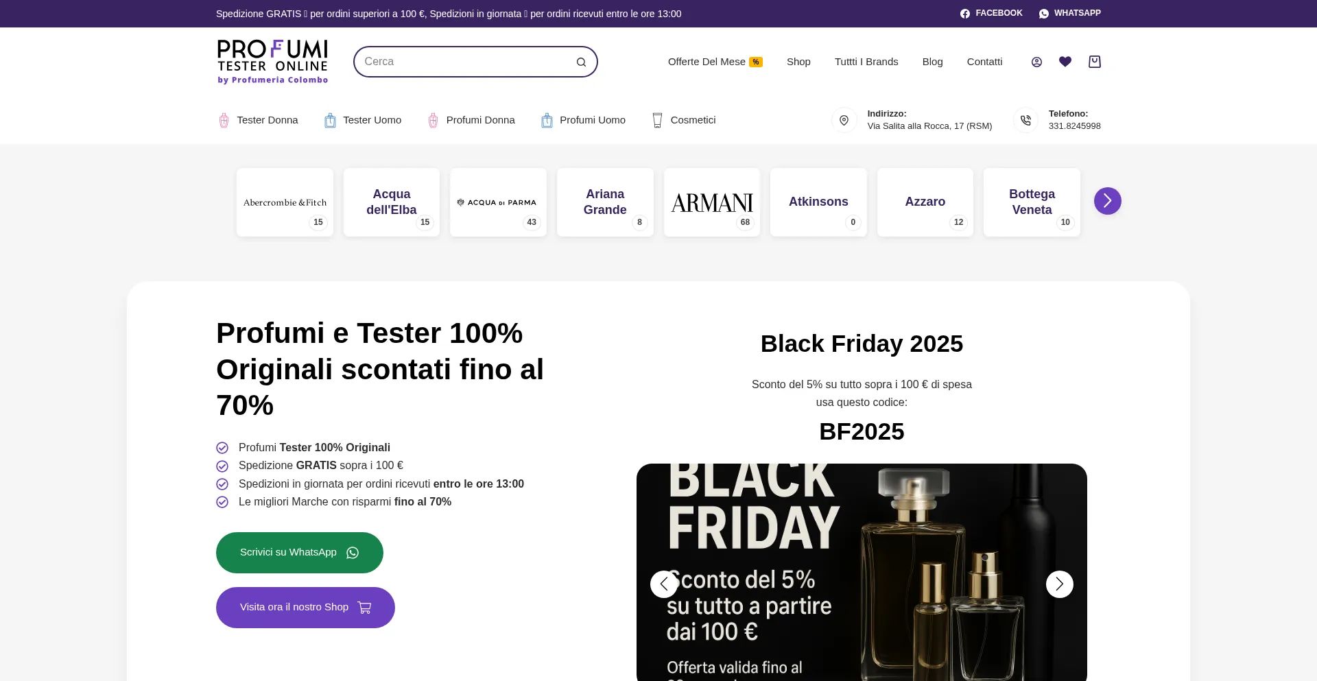 Profumi e Tester, da San Marino a casa tua con sconti fino al 70% | Spedizione GRATIS 🎁 per ordini superiori a 100 € e 5% in regalo sopra i 150 €