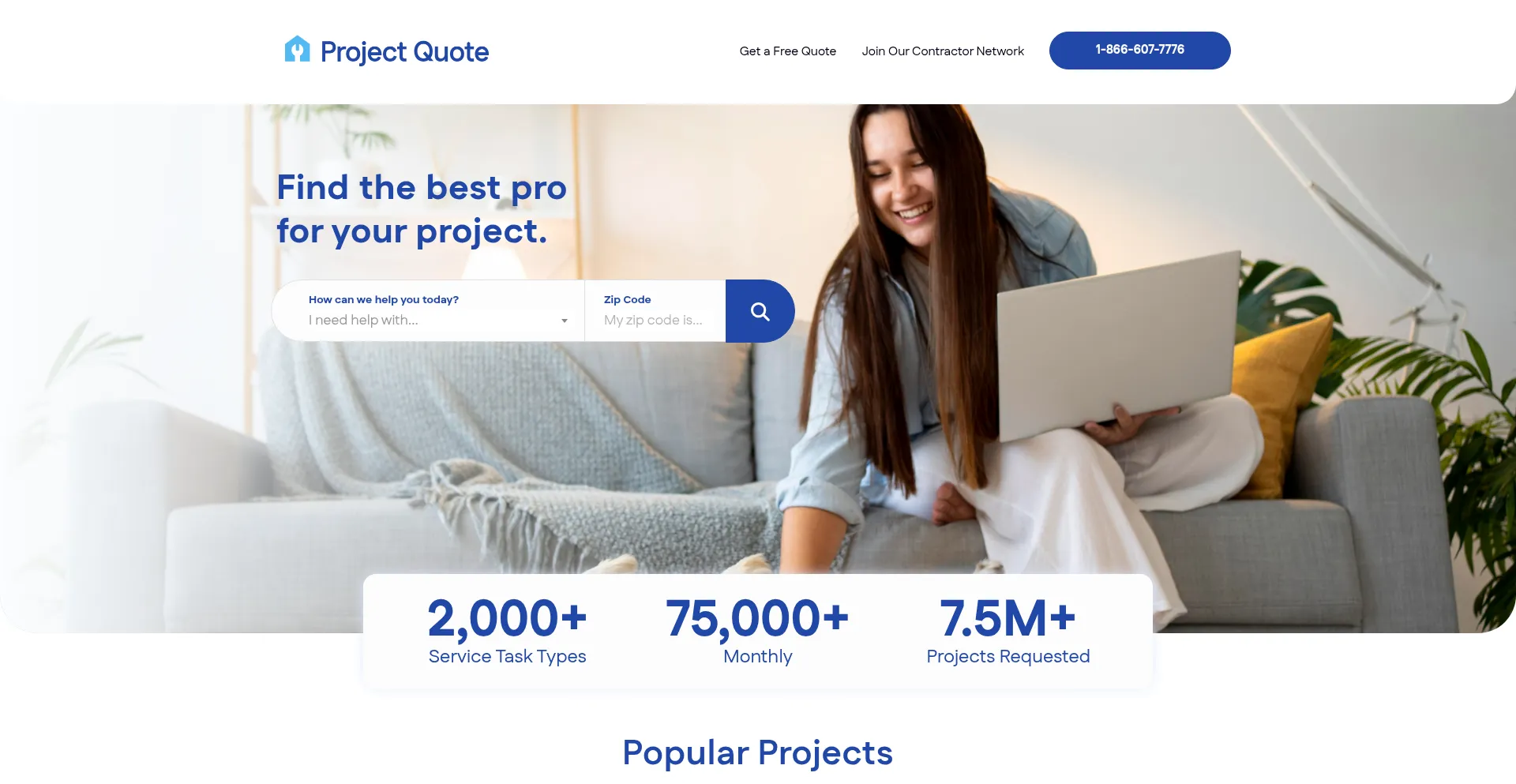 projectquote.com 使用 Bootstrap,这是一个广泛采用的开源响应式网页开发框架。Bootstrap 通过标准化组件和样式实现移动友好界面的高效创建。