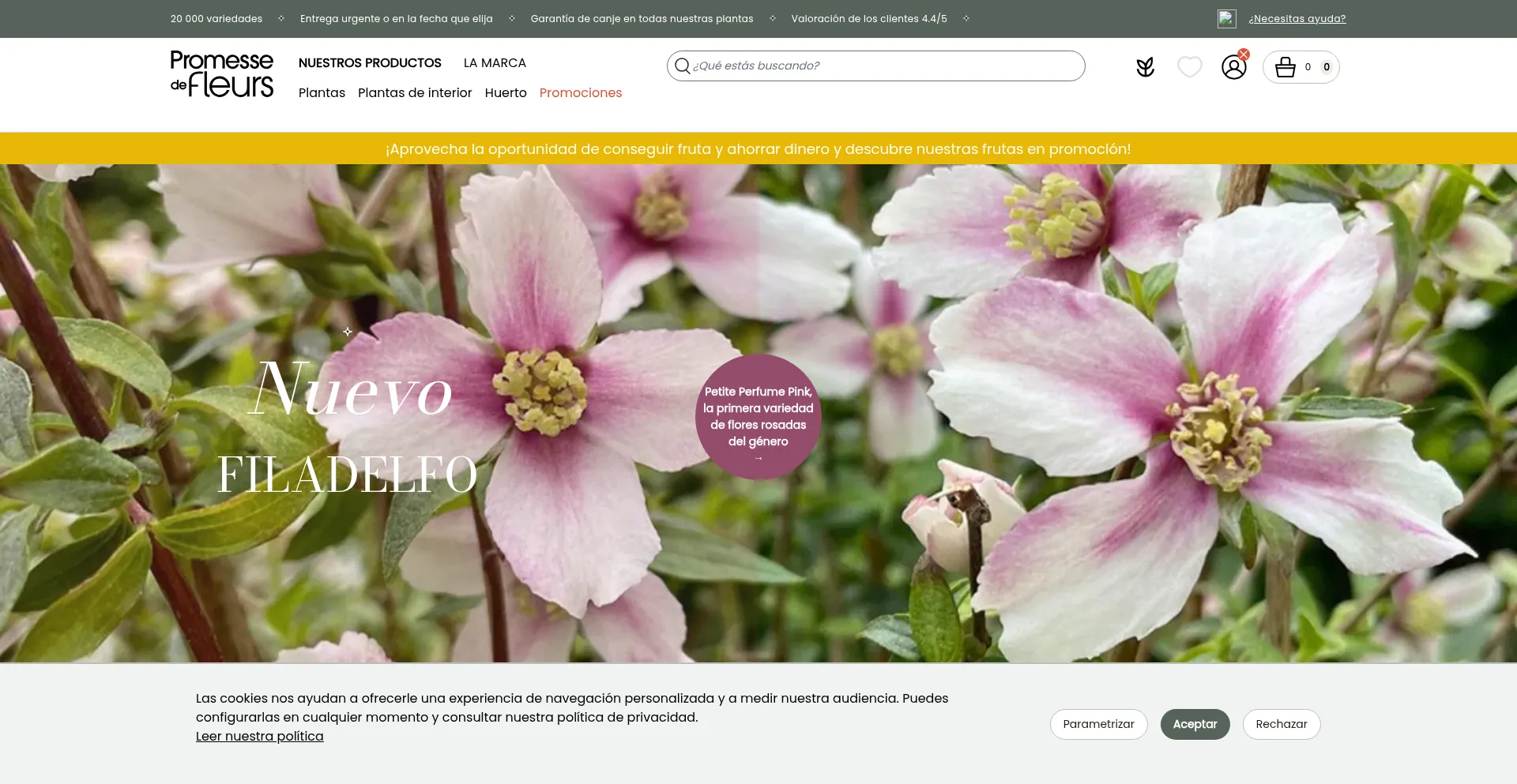该网站实现数据收集表单,请求个人信息,包括姓名、电子邮件地址、电话号码或其他敏感详细信息。用户应验证 promessedefleurs.es 的合法性并在提交个人数据前查看隐私政策。