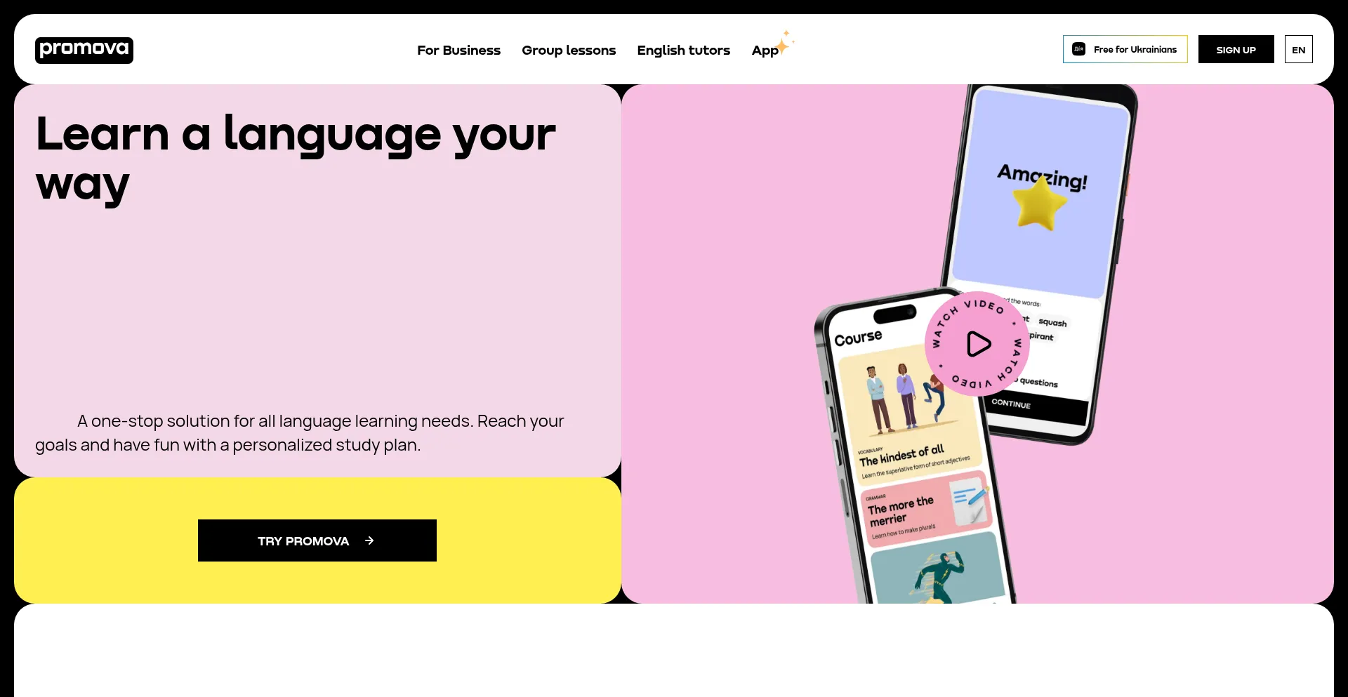 Learn languages with Promova — bite-sized lessons, interactive online courses, personalized tutoring, and AI-powered speaking practice with AI Tutor.