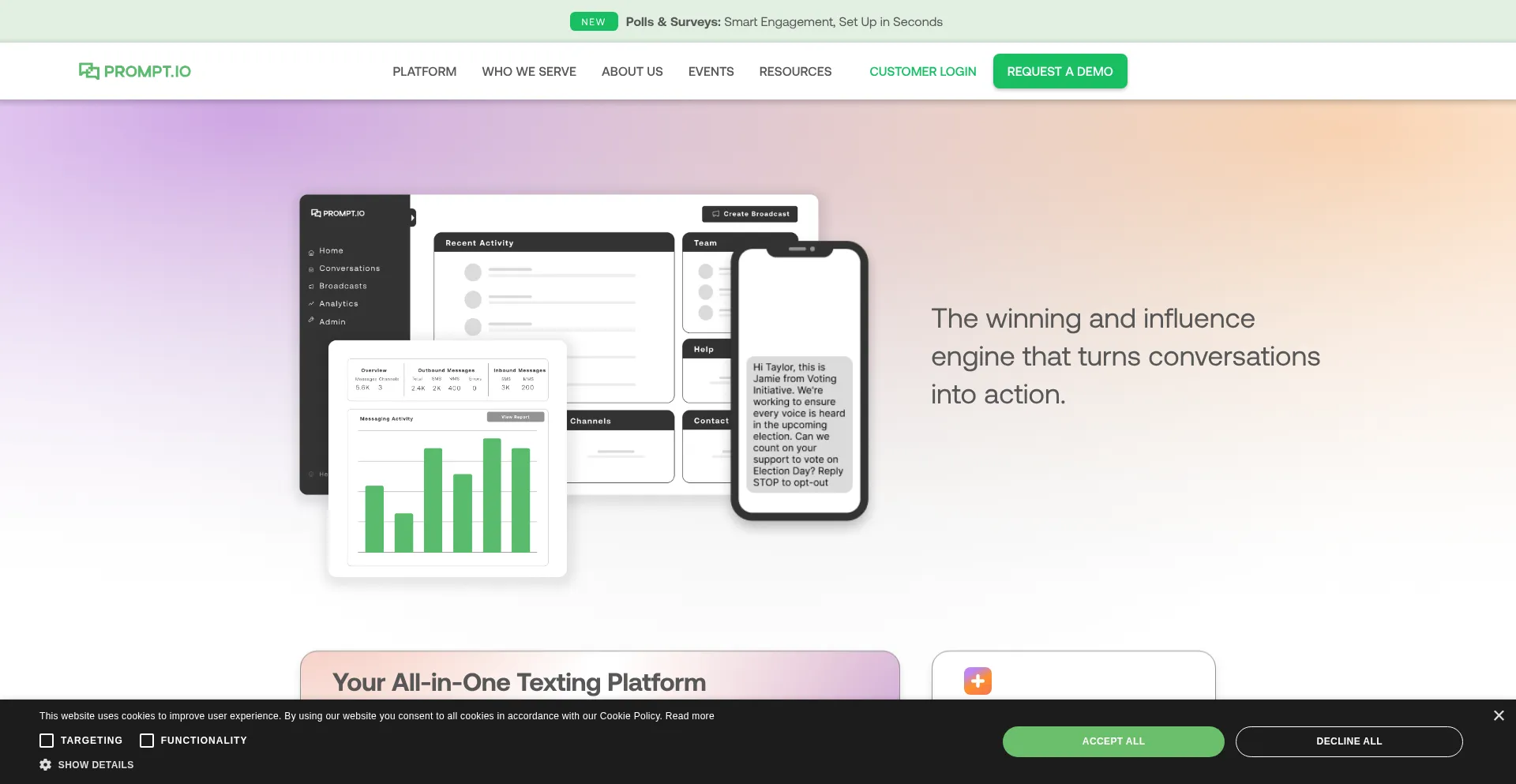 Prompt.io™ is the winning and influence engine for leading political campaigns, unions, advocacy, and nonprofit organizations. We amplify and scale each organization's impact ...