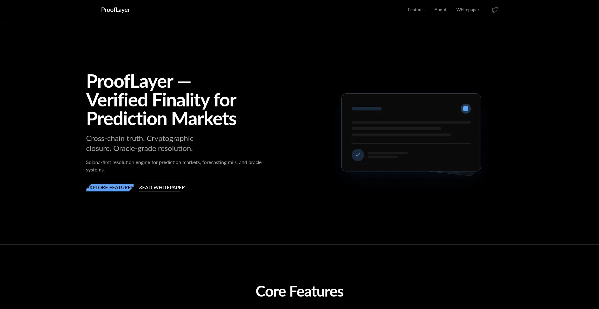 Cross-chain truth. Cryptographic closure. Oracle-grade resolution. Solana-first resolution engine for prediction markets, forecasting rails, and oracle systems.