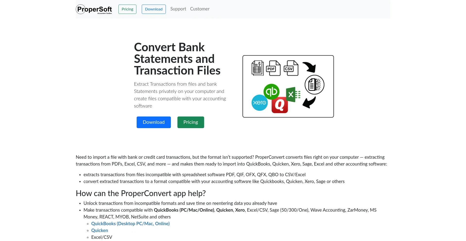 ProperConvert - Extract transactions and import into Quickbooks, Quicken, Excel