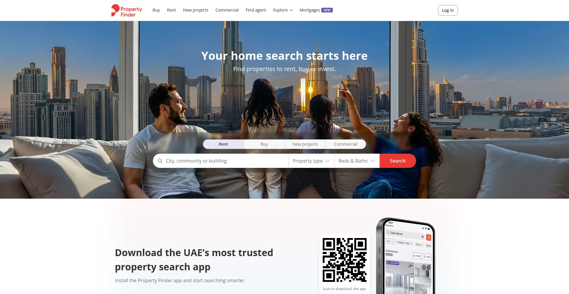 propertyfinder.ae 提供 Android 设备移动应用程序,表明平台存在已扩展到网络服务之外。