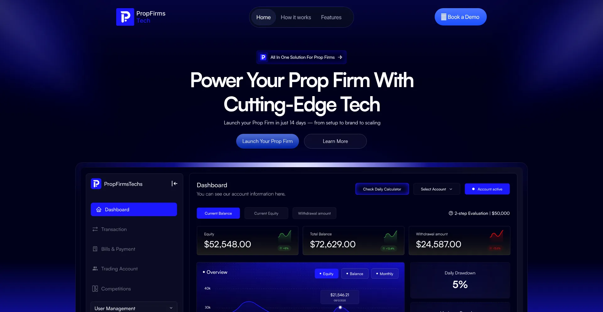 PropFirmsTech provides affordable, customizable tech solutions to help you launch and scale your prop firm with ease. Manage traders and operations seamlessly with our platform.