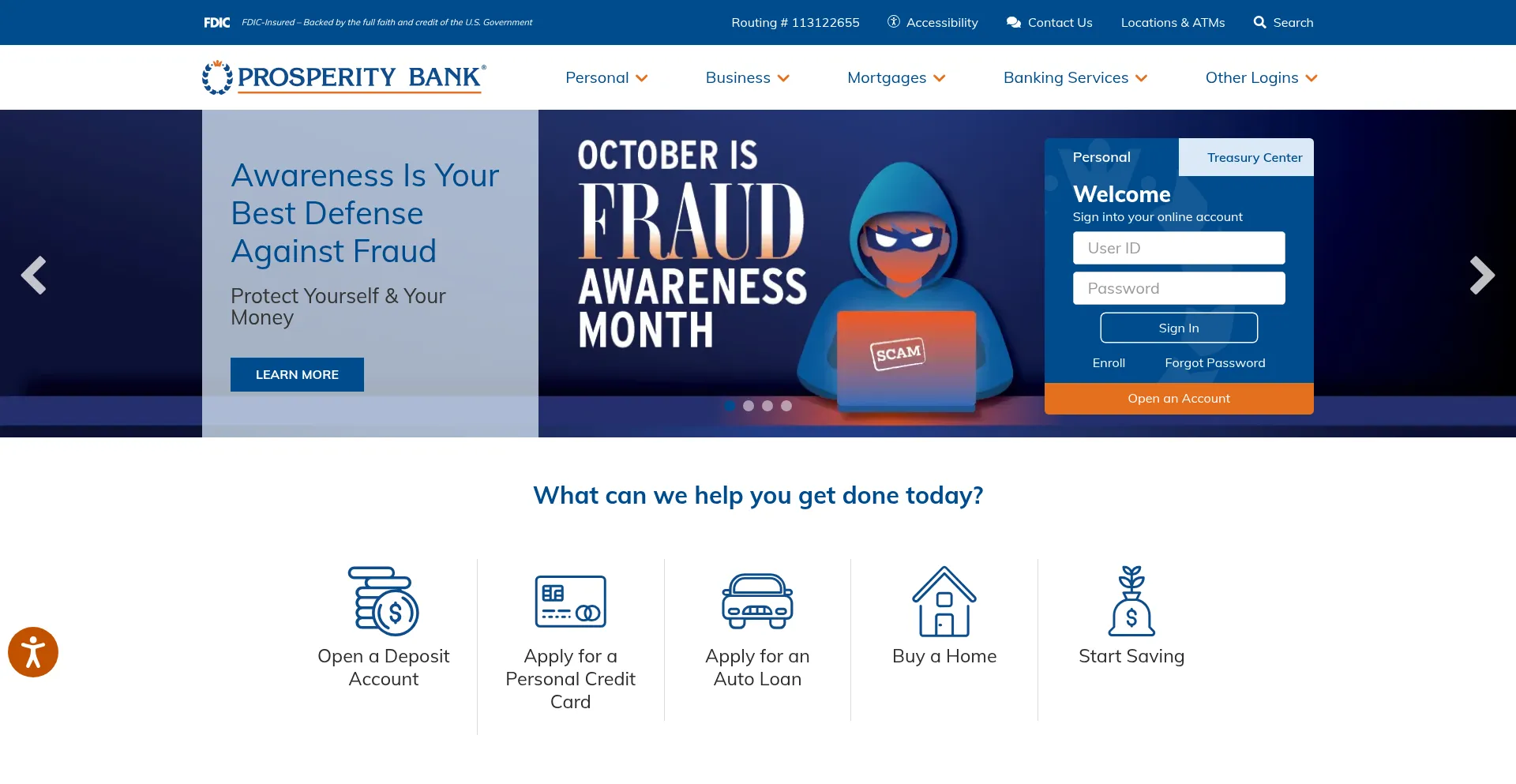 prosperitybankusa.com 提供 Android 设备移动应用程序,表明平台存在已扩展到网络服务之外。