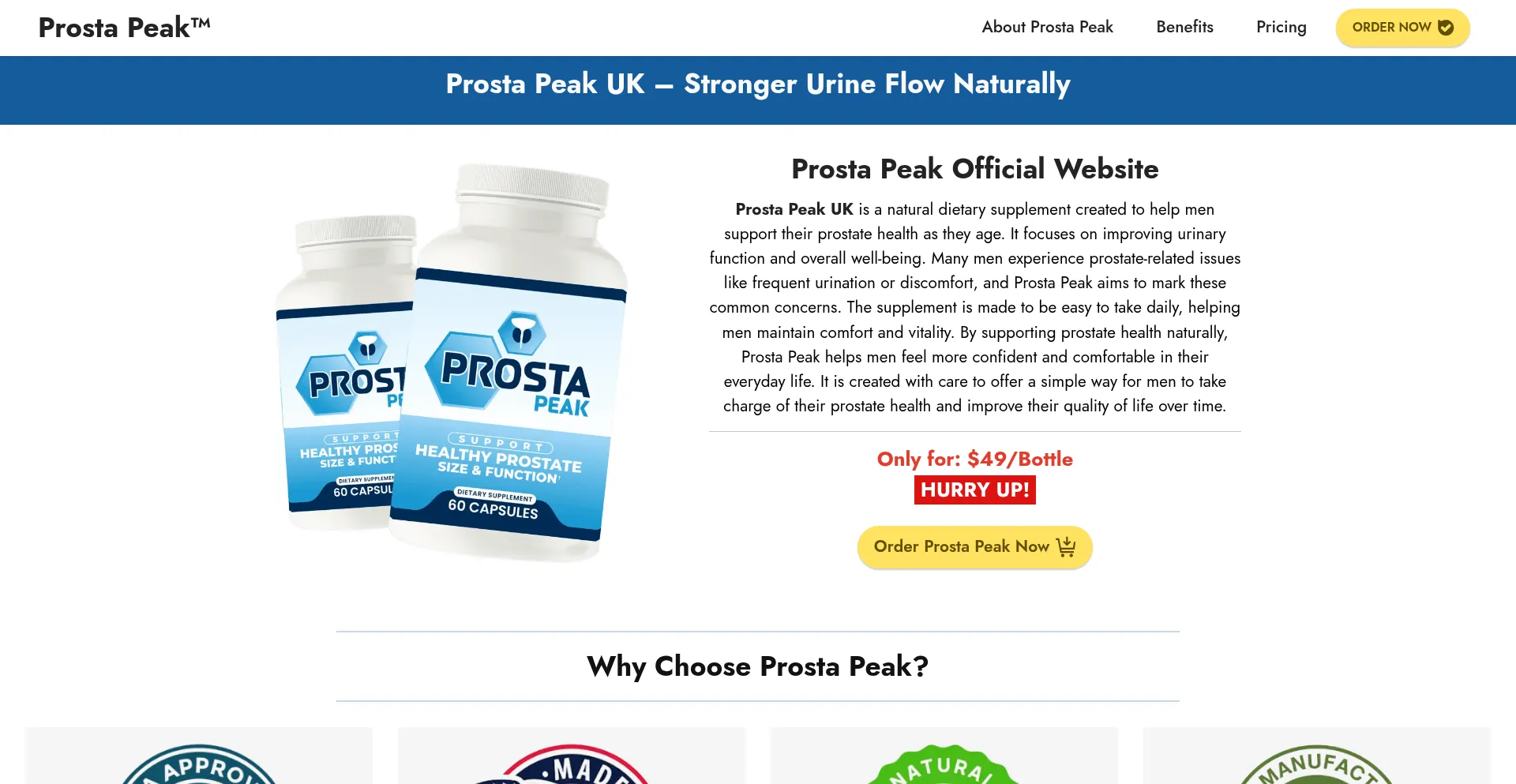 Prosta Peak UK promotes healthy prostate function, improves urinary flow, reduces nighttime trips, and supports vitality with natural ingredients.