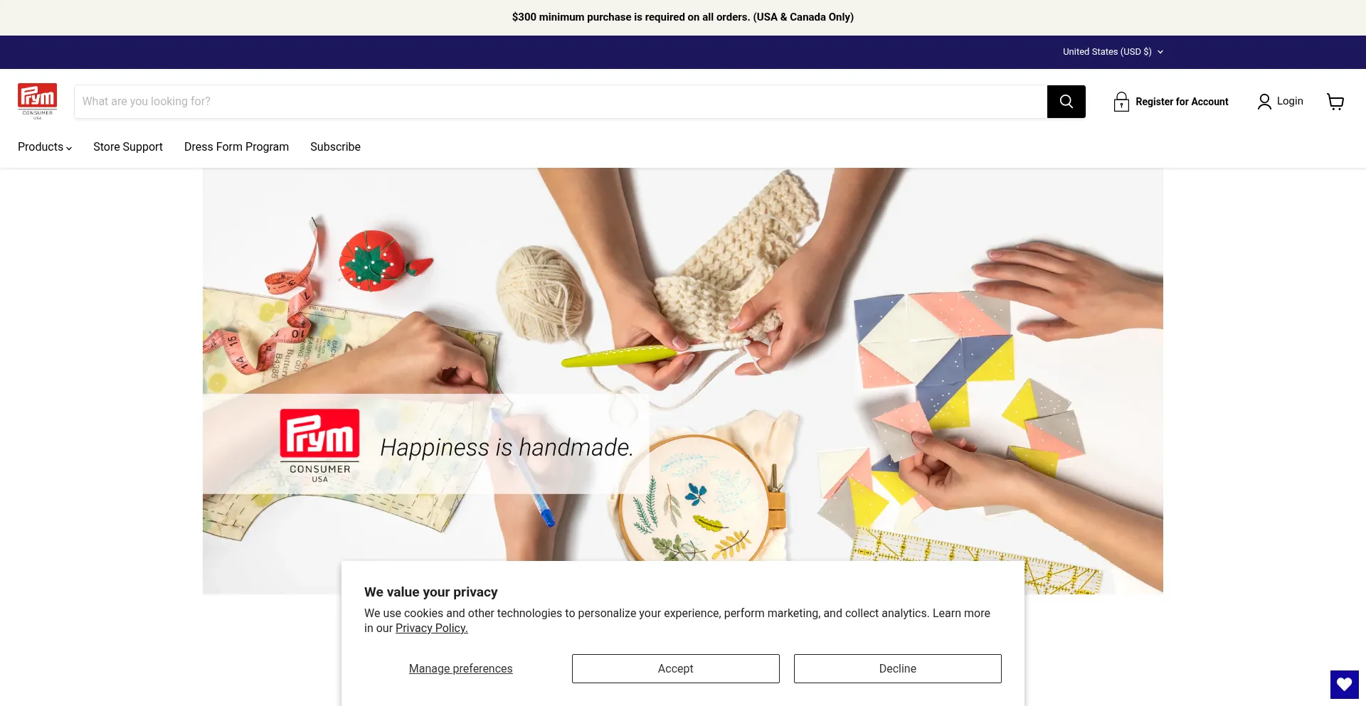 该网站实现符合GDPR或CCPA等隐私法规的cookie同意机制。这表明 prymconsumerusa.com 遵守数据保护标准并为用户提供对个人数据收集实践的控制。