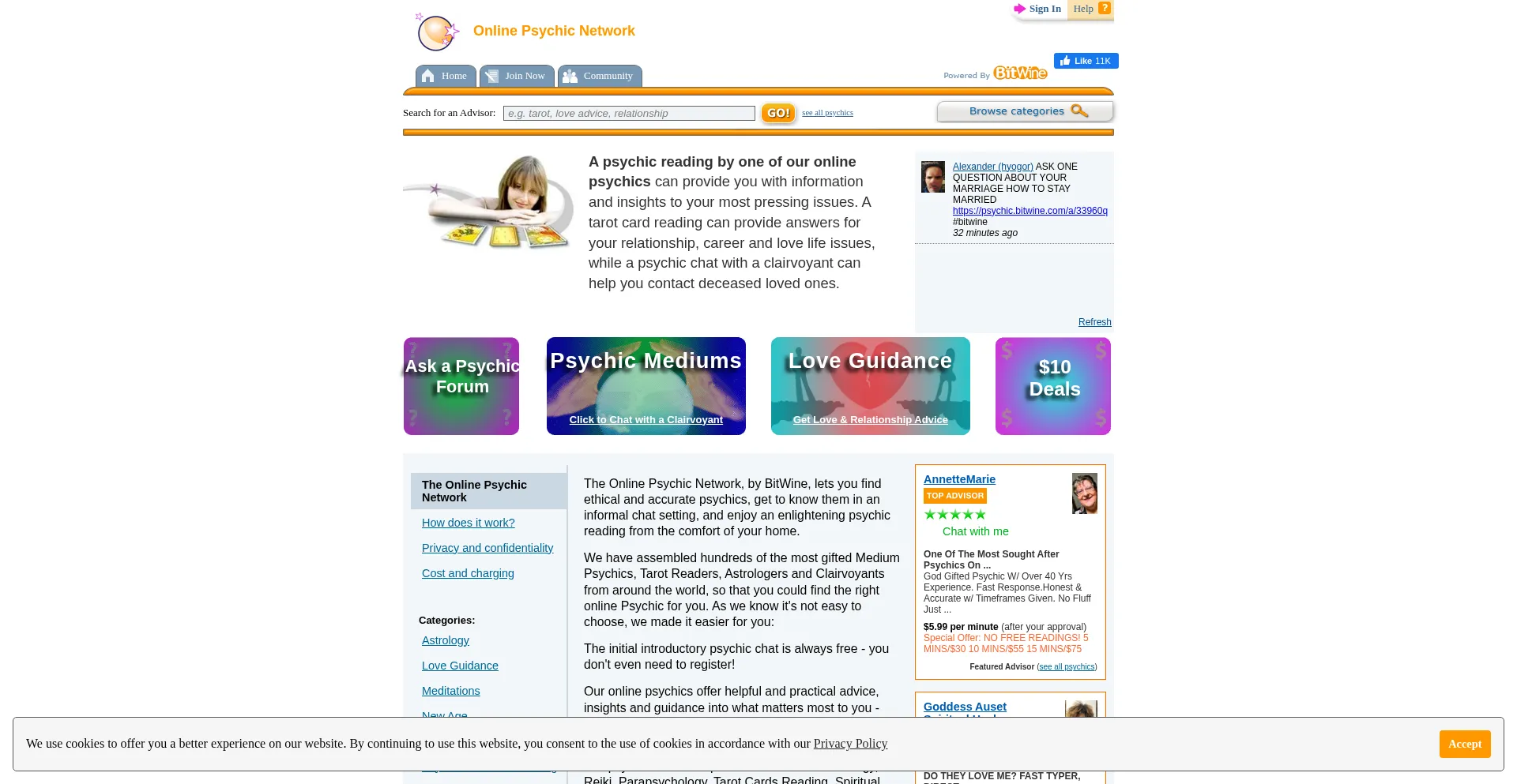 Get an accurate Psychic Reading from a live, online Psychic. Free until you are ready. Online psychic love readings, tarot reading, clairvoyant, via online chat at the Online Ps...