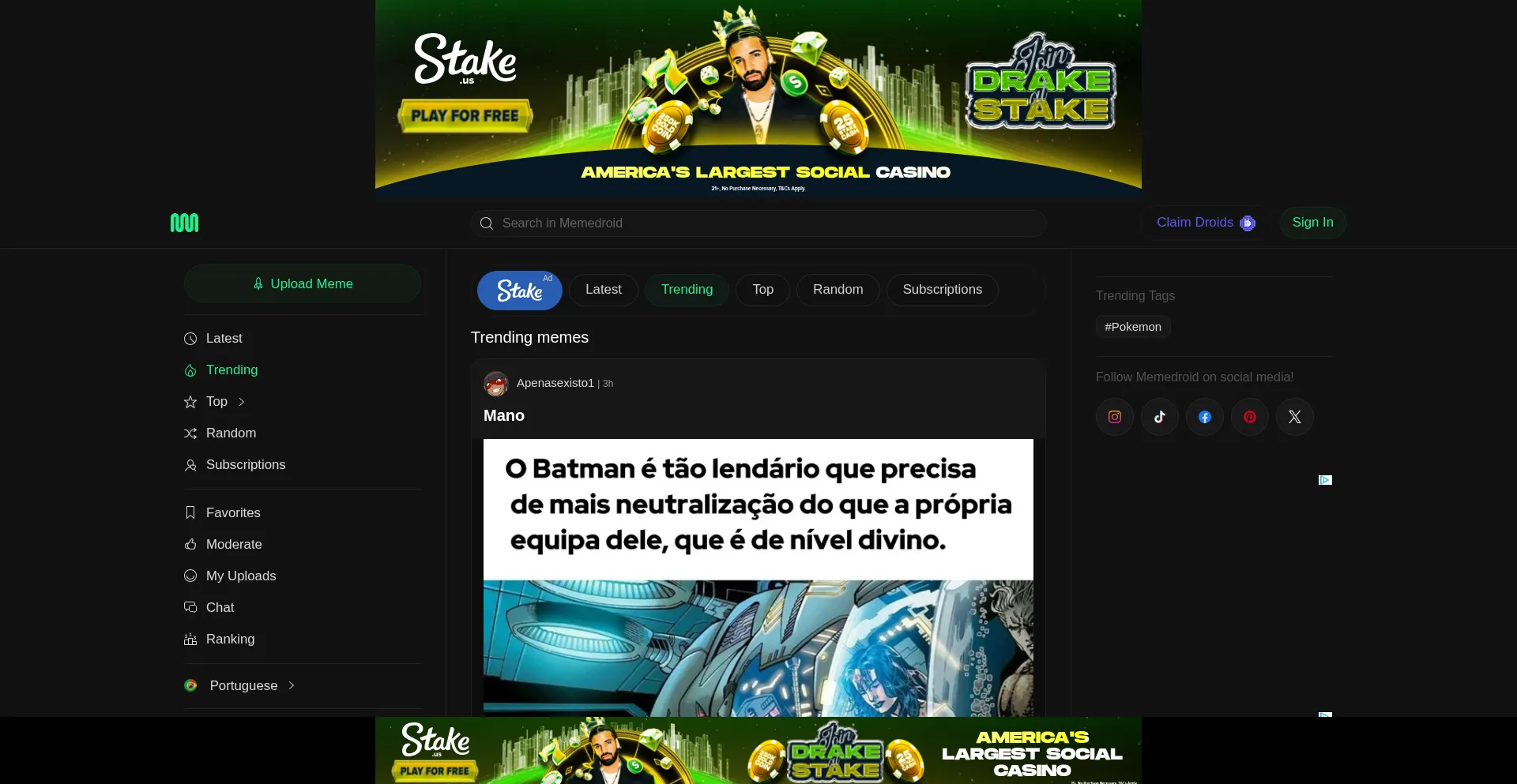 pt.memedroid.com 提供 Android 设备移动应用程序,表明平台存在已扩展到网络服务之外。